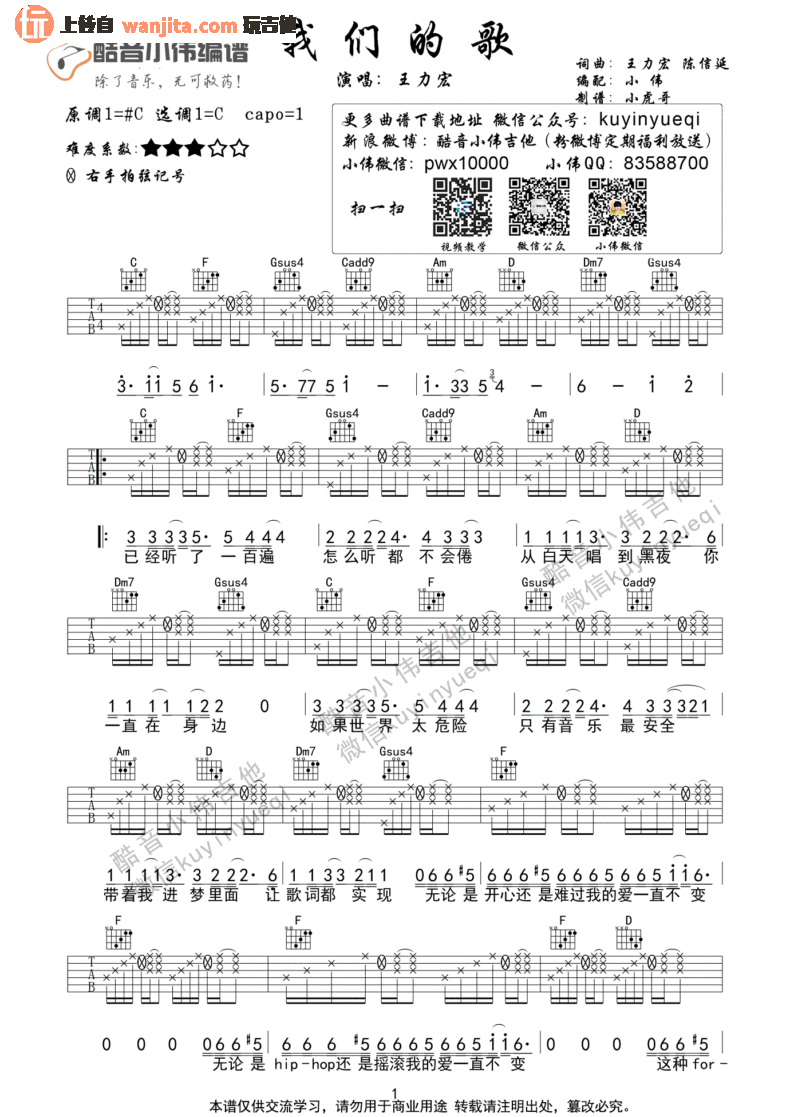 我们的歌吉他谱 - 王力宏 - C调吉他弹唱谱 - 原版