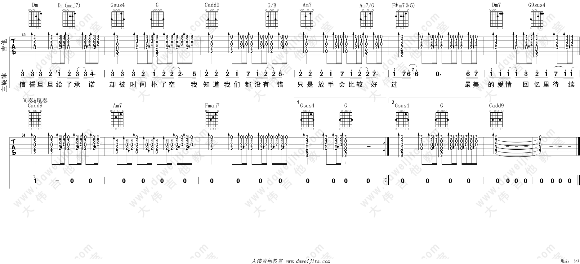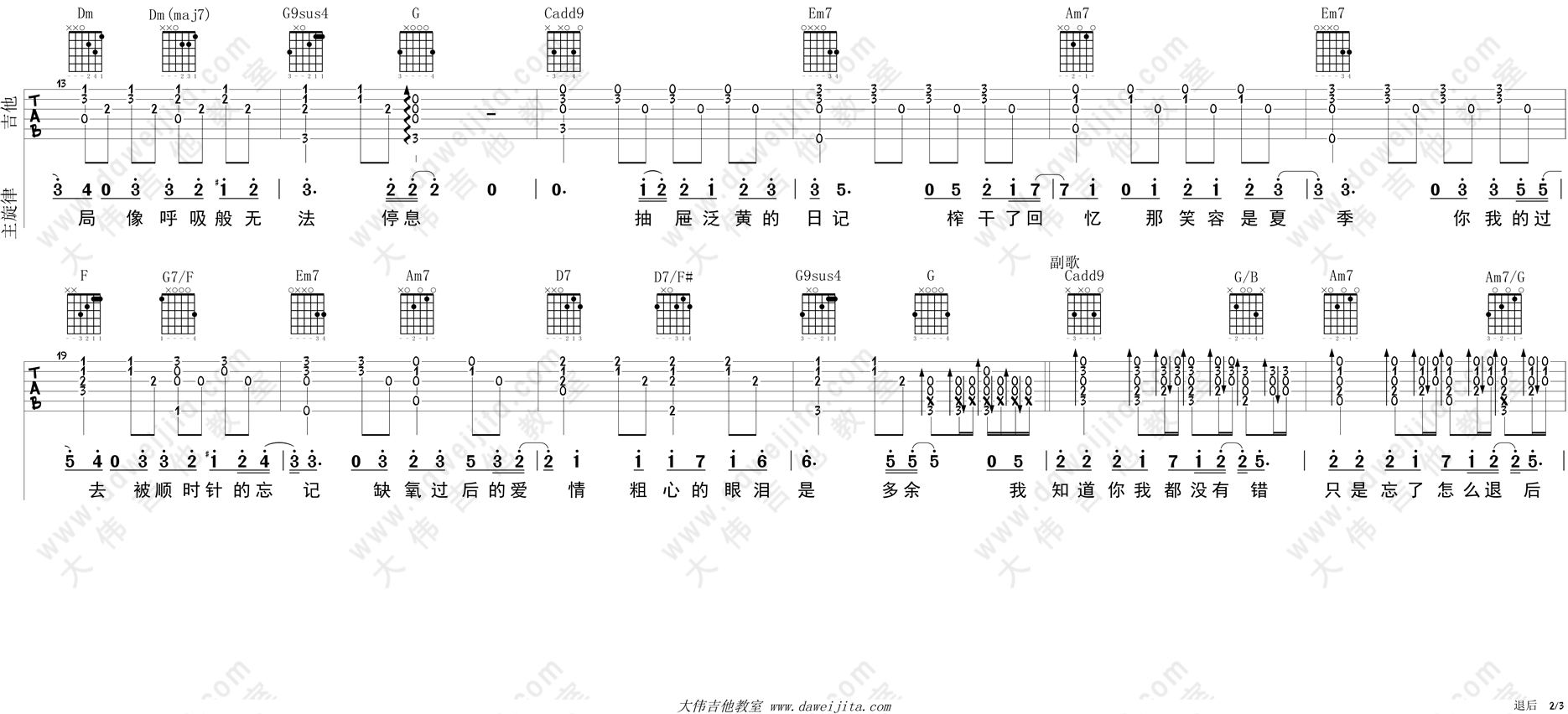 曲谱介绍: 《退后》吉他弹唱演示示范视频