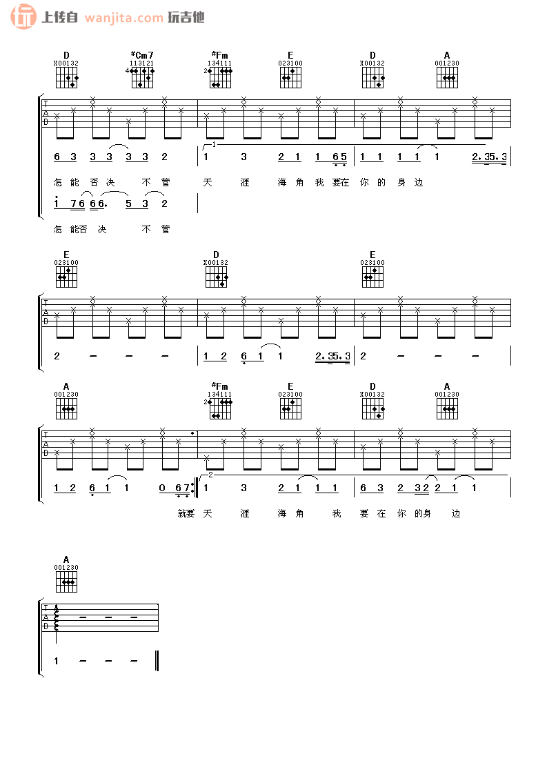 曲谱介绍: 《在你身边》吉他谱,A调,阿潘音乐工场编配。这首歌曲难度属于中等,适合进阶练习,大家在学习的时候要注意这首歌的间奏和前奏,一首充满张学友对歌迷爱的歌曲。