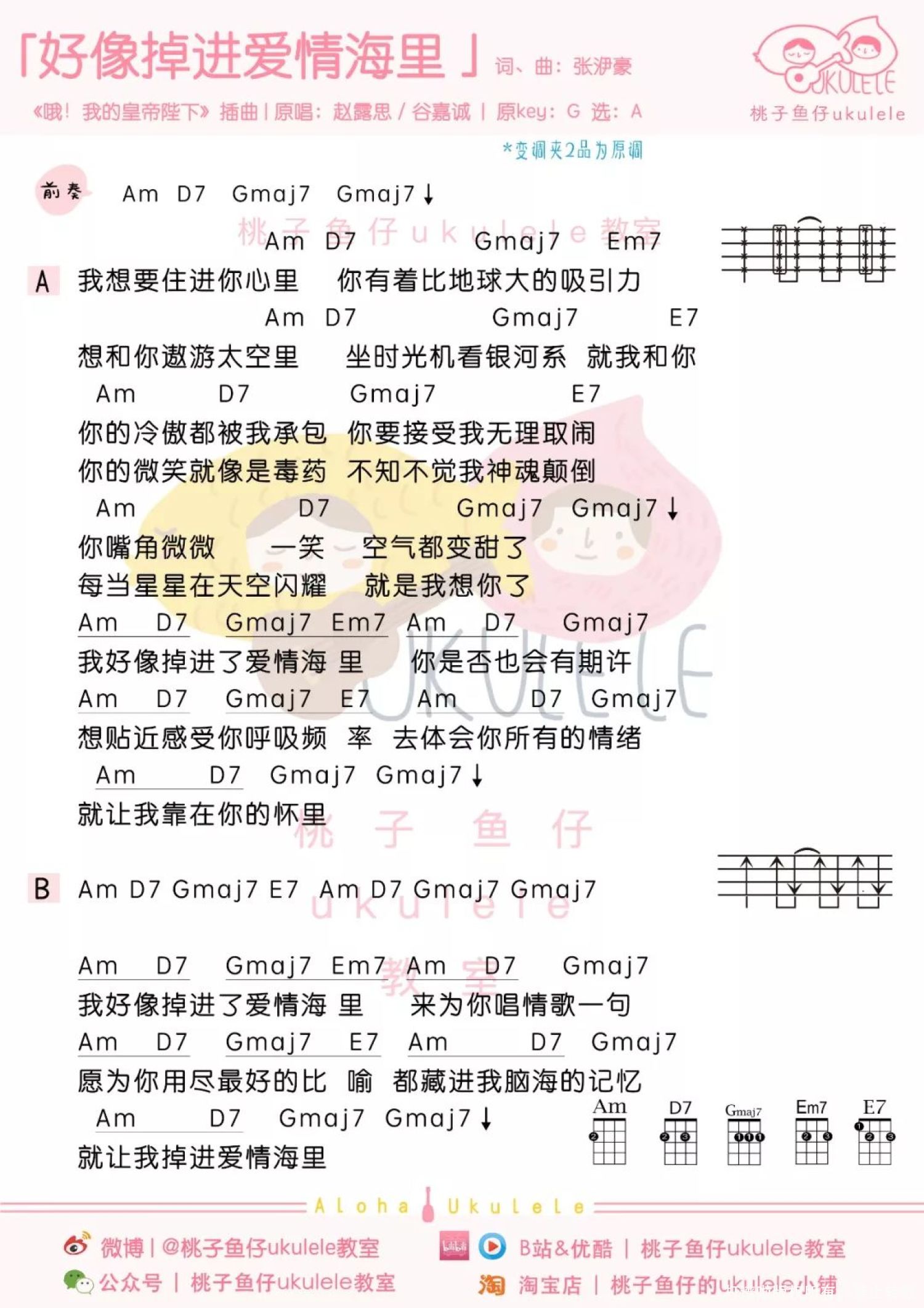 好像掉进爱情海里尤克里里谱 - 赵露思、谷嘉诚