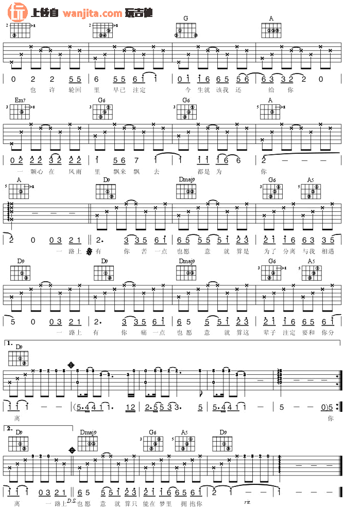 当前位置:琴谱网>吉他弹唱>一路上有你
