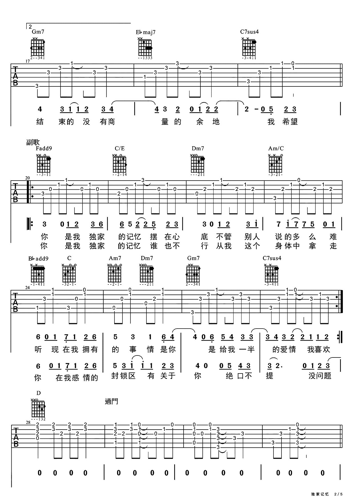 当前位置:琴谱网>吉他弹唱>独家记忆
