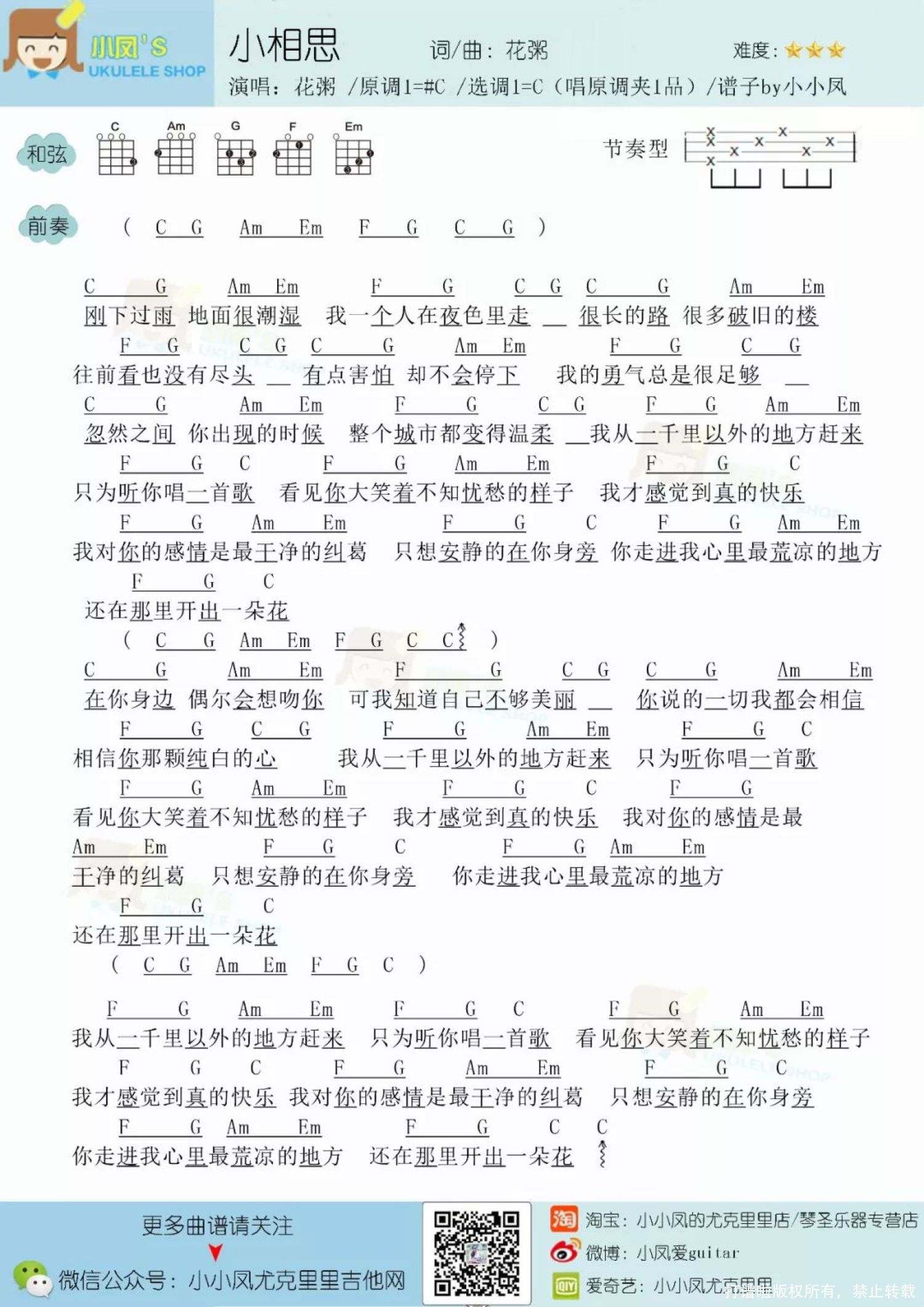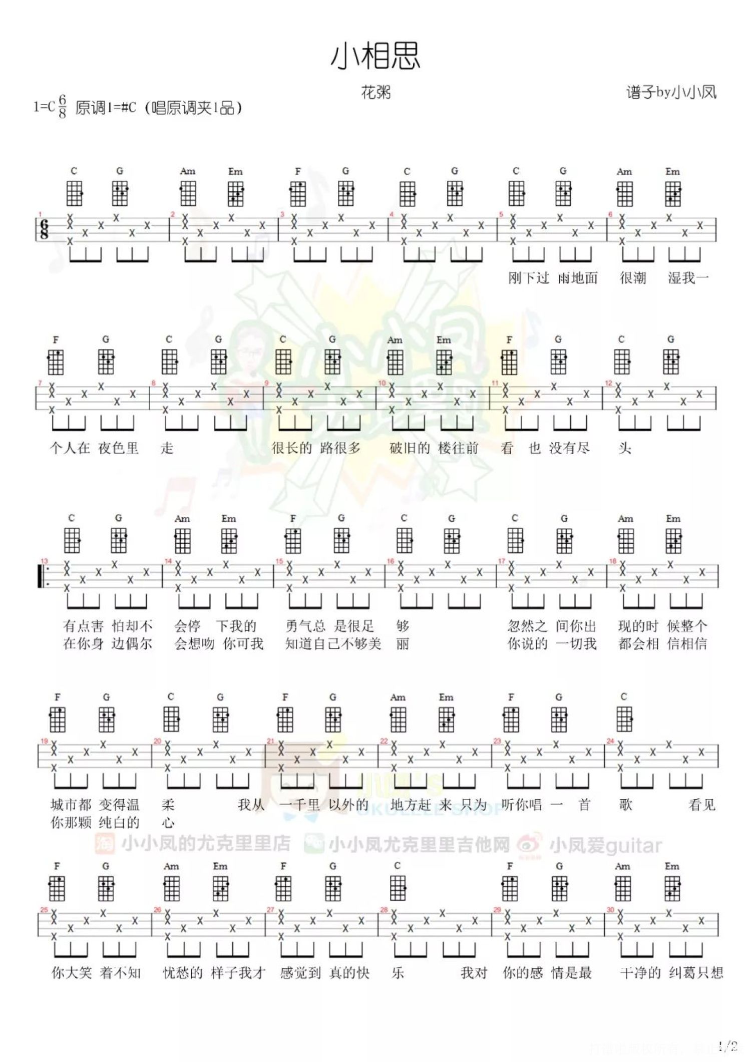 小相思尤克里里谱 - 花粥