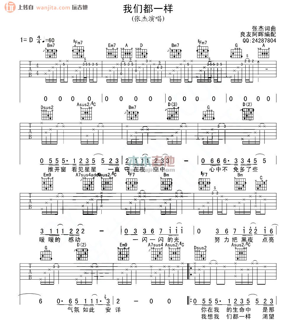 我们都一样吉他谱 - 张杰 - D调吉他弹唱谱 - 原版