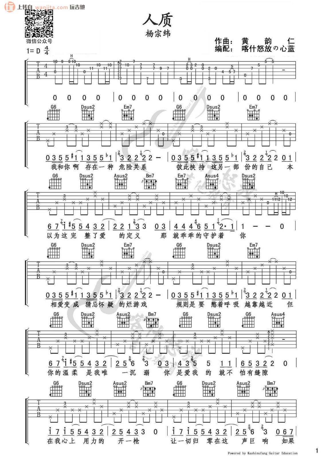 人质吉他谱 - 杨宗纬 - D调吉他弹唱谱