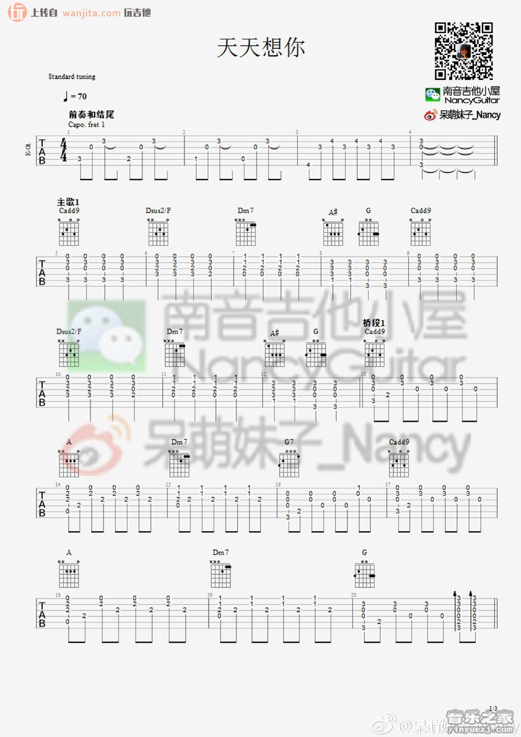 琴谱网为您精心推荐 天天想你 高清图谱