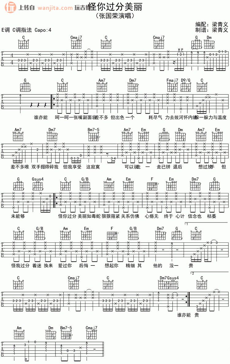 当前位置:琴谱网>吉他弹唱>怪你过分美丽