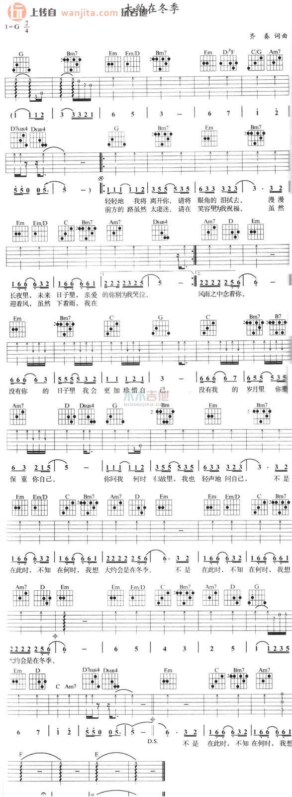 当前位置:琴谱网>吉他弹唱>大约在冬季