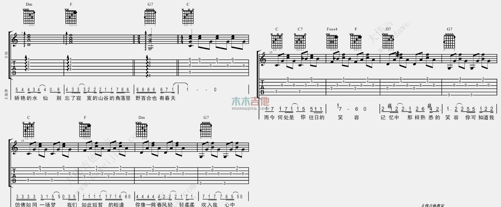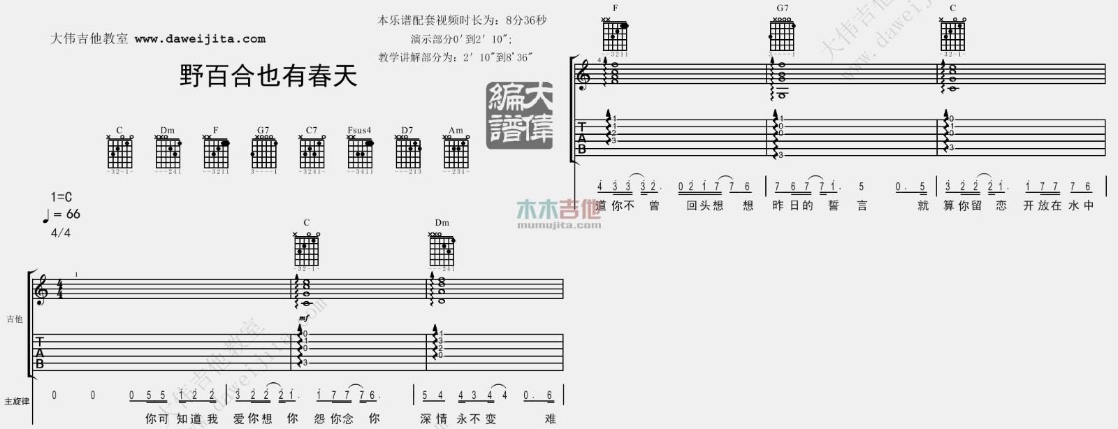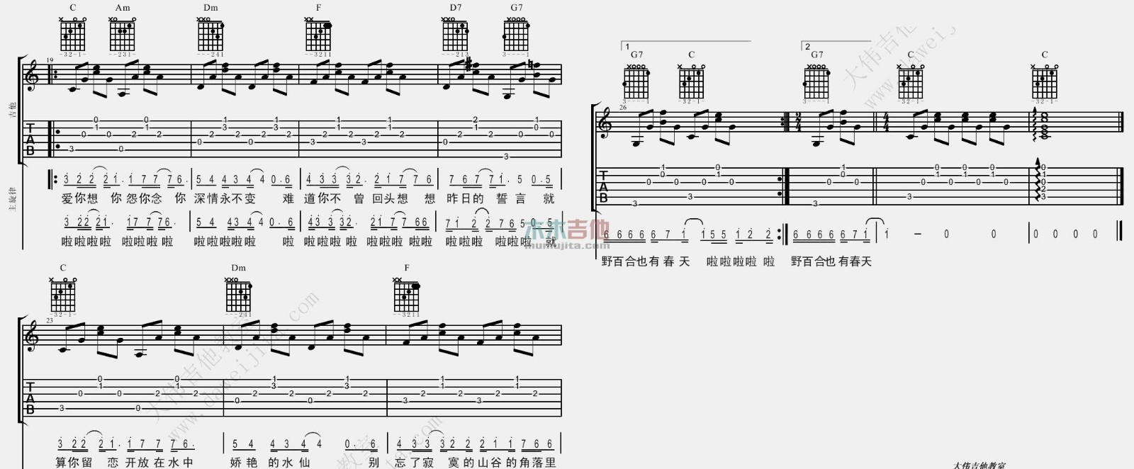 当前位置:琴谱网>吉他弹唱>野百合也有春天