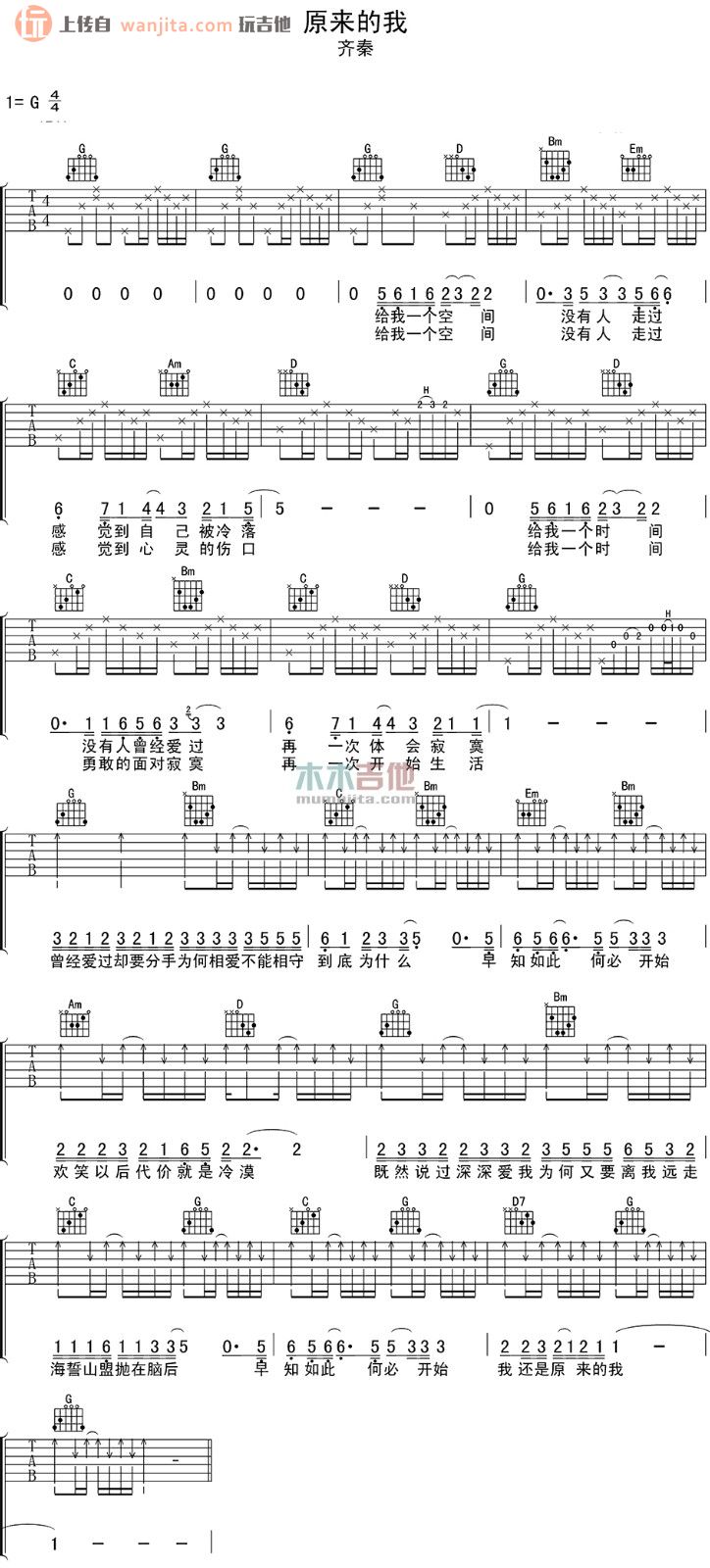 原来的我吉他谱 - 齐秦 - G调吉他弹唱谱