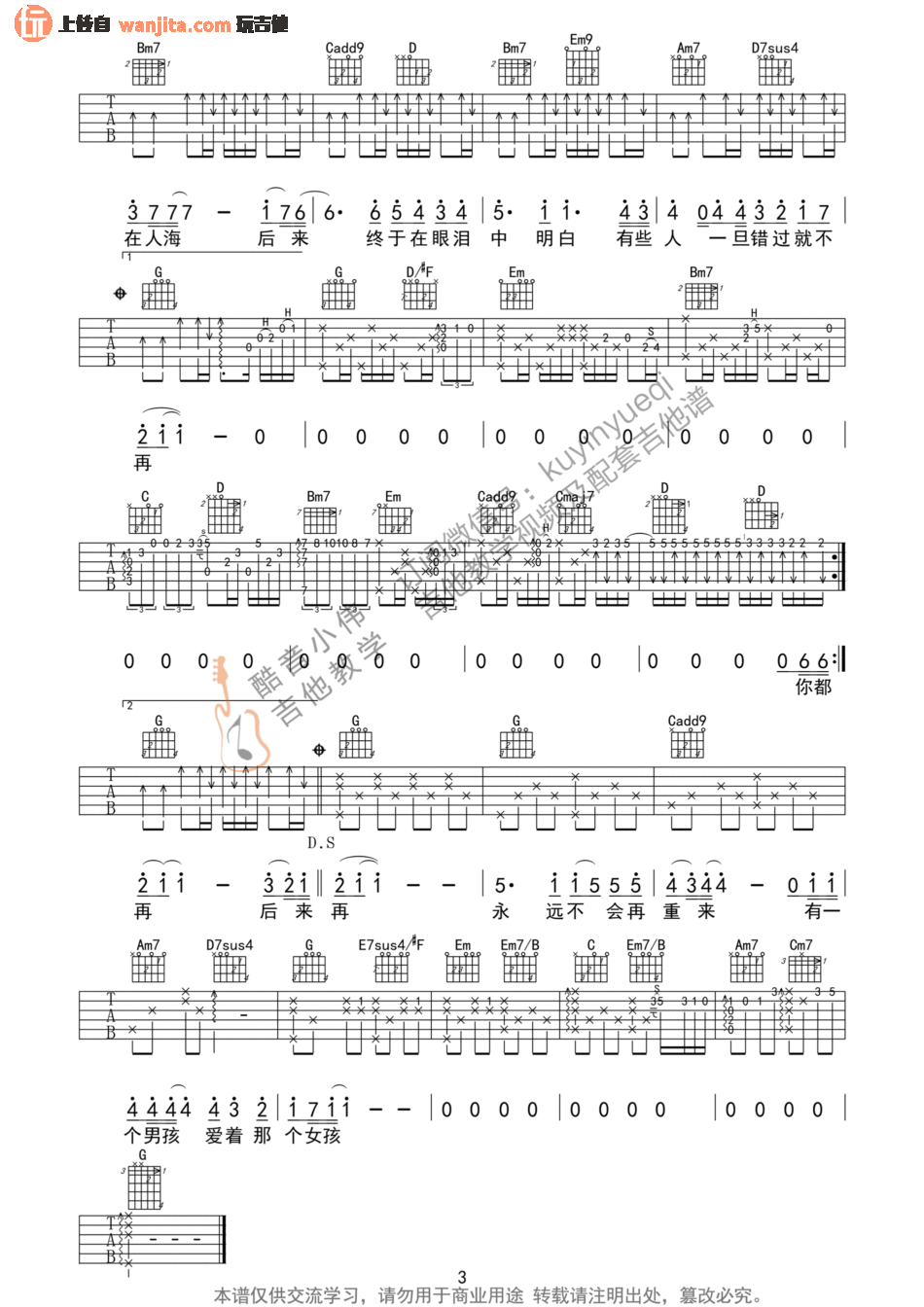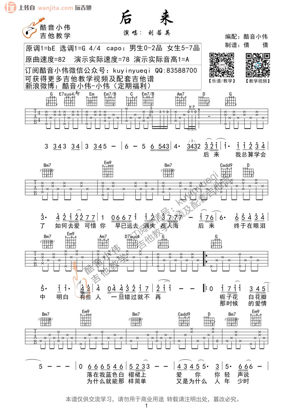 曲谱介绍: 后来吉他谱是由酷音小伟编排,男声0-2品,女声5-7品。这首歌流唱于大街小巷,没人不知。