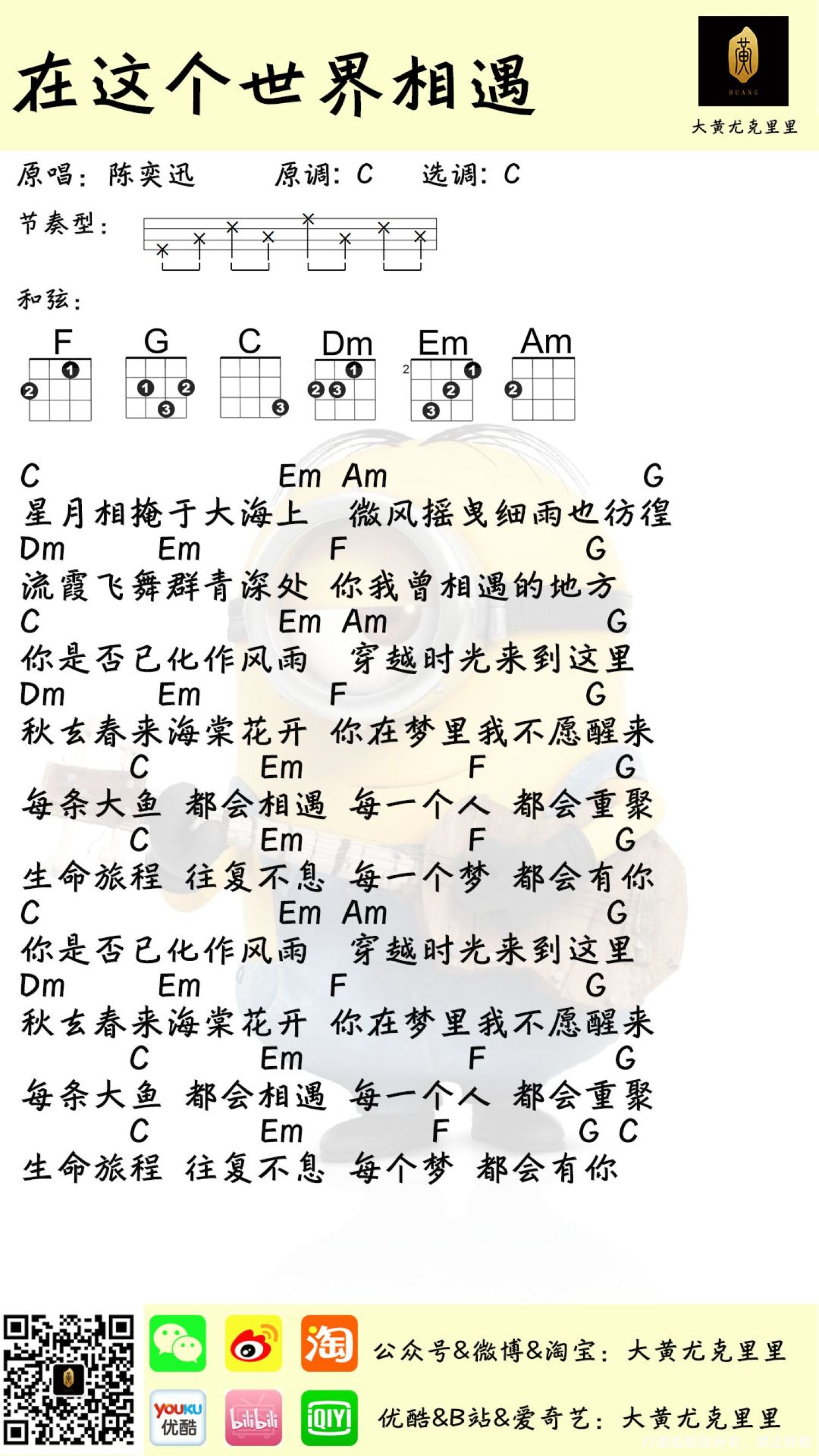 曲谱介绍: 《在这个世界相遇》尤克里里弹唱谱