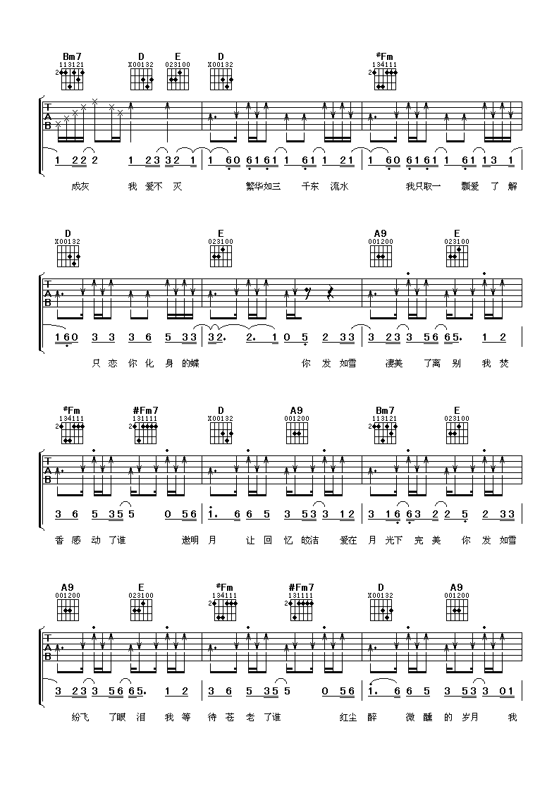 当前位置:琴谱网>吉他弹唱>发如雪