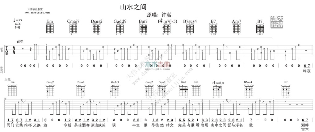 山水之间吉他谱 - 许嵩 - G调吉他弹唱谱 - 原版