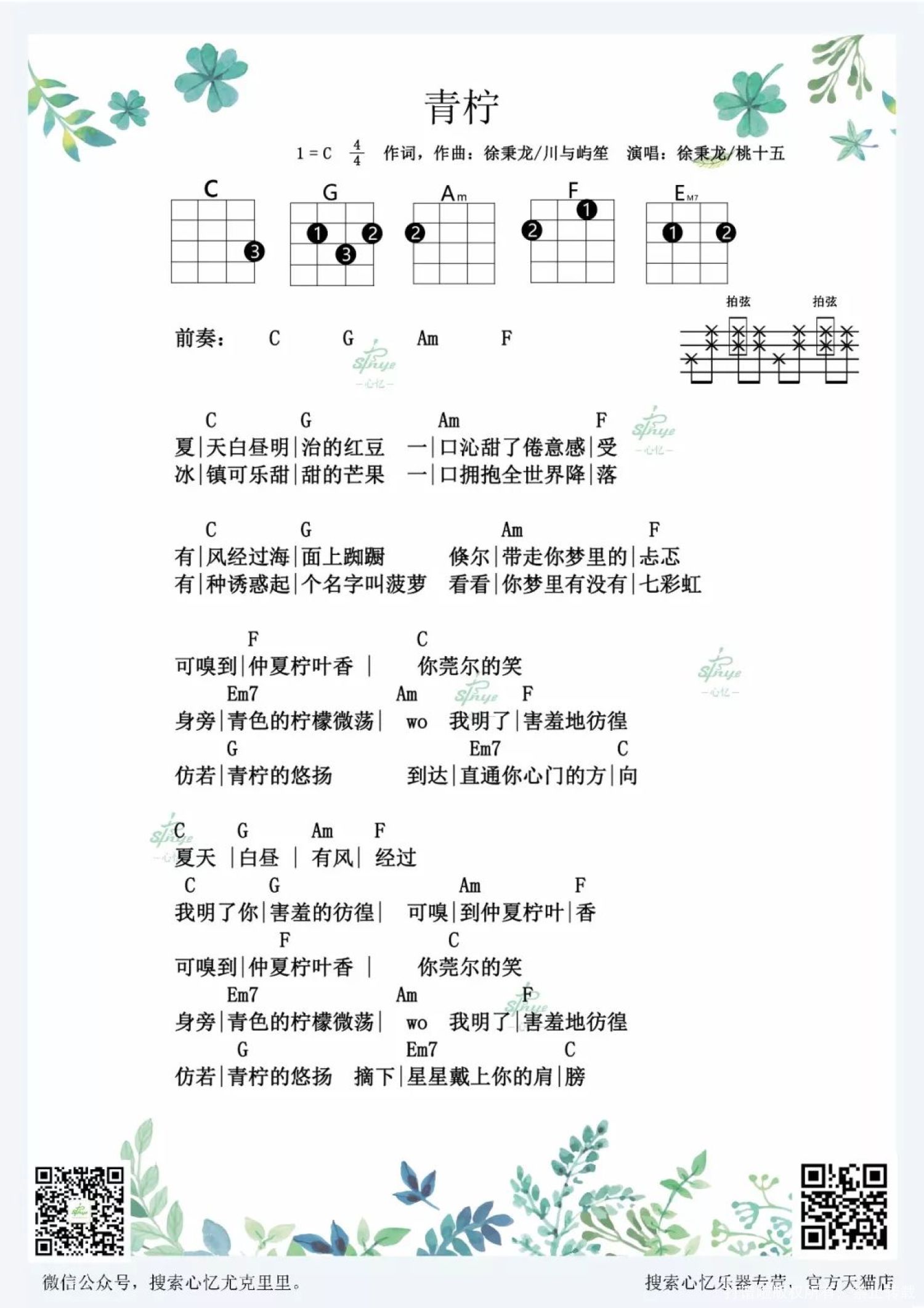 曲谱介绍: 《青柠》尤克里里谱