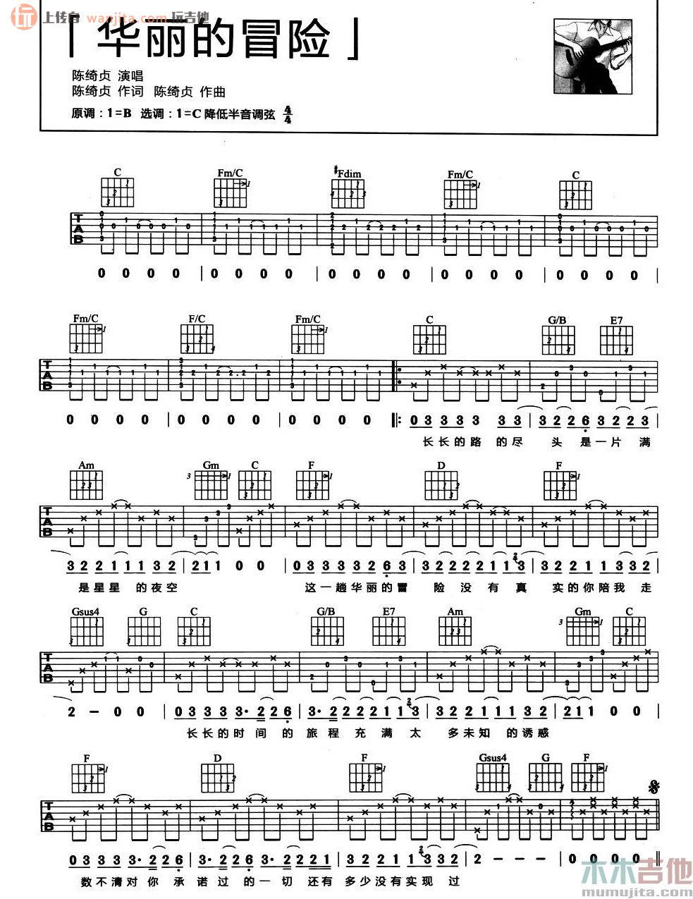 华丽的冒险吉他谱 - 陈绮贞 - C调吉他弹唱谱 - 原版