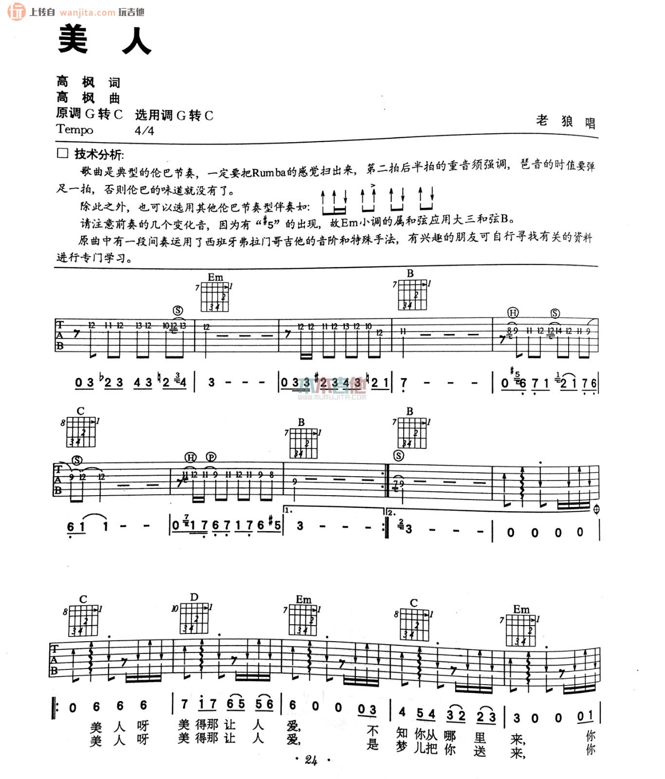 美人吉他谱 - 老狼 - C调吉他弹唱谱