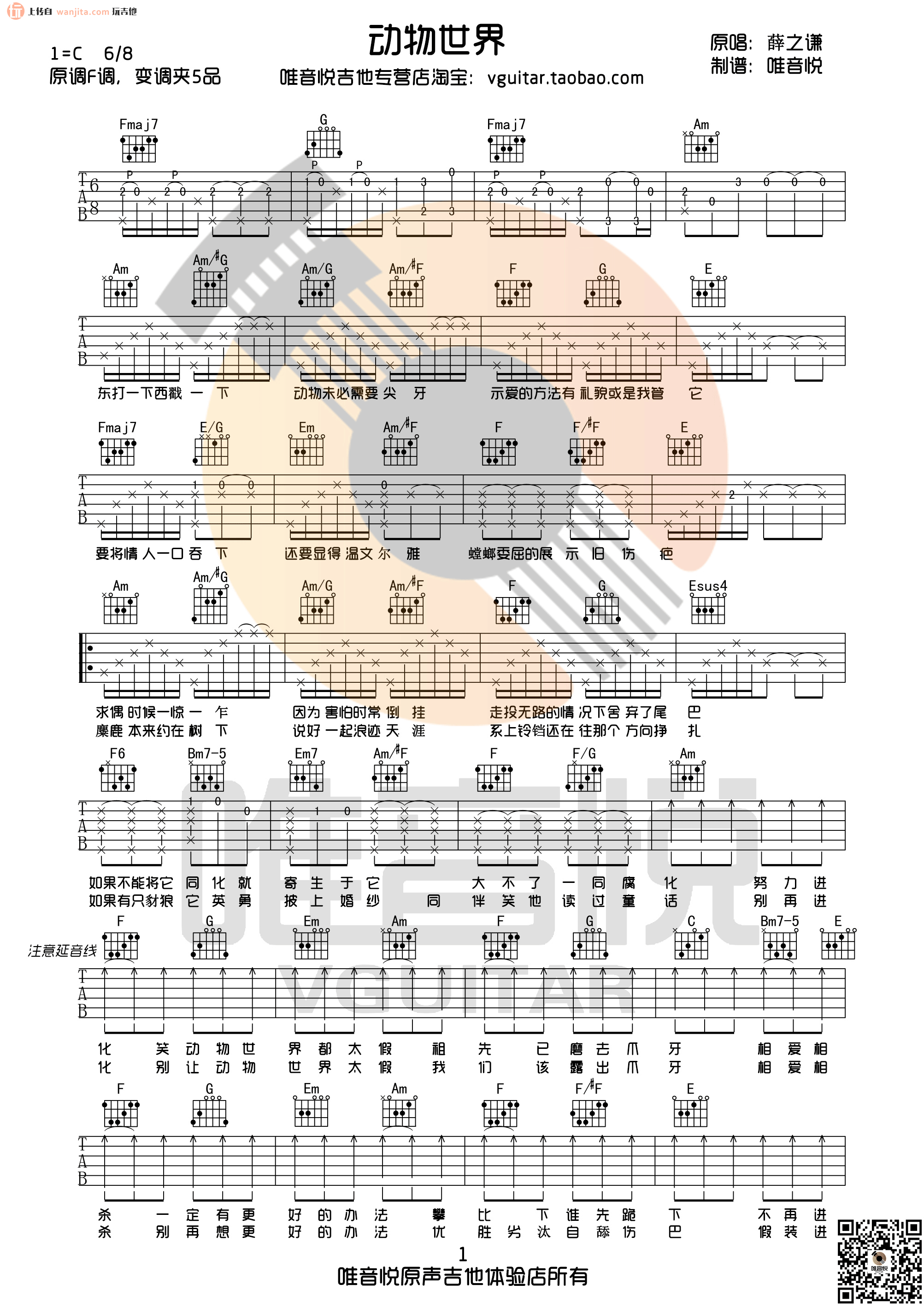 动物世界吉他谱 - 薛之谦 - C调吉他弹唱谱