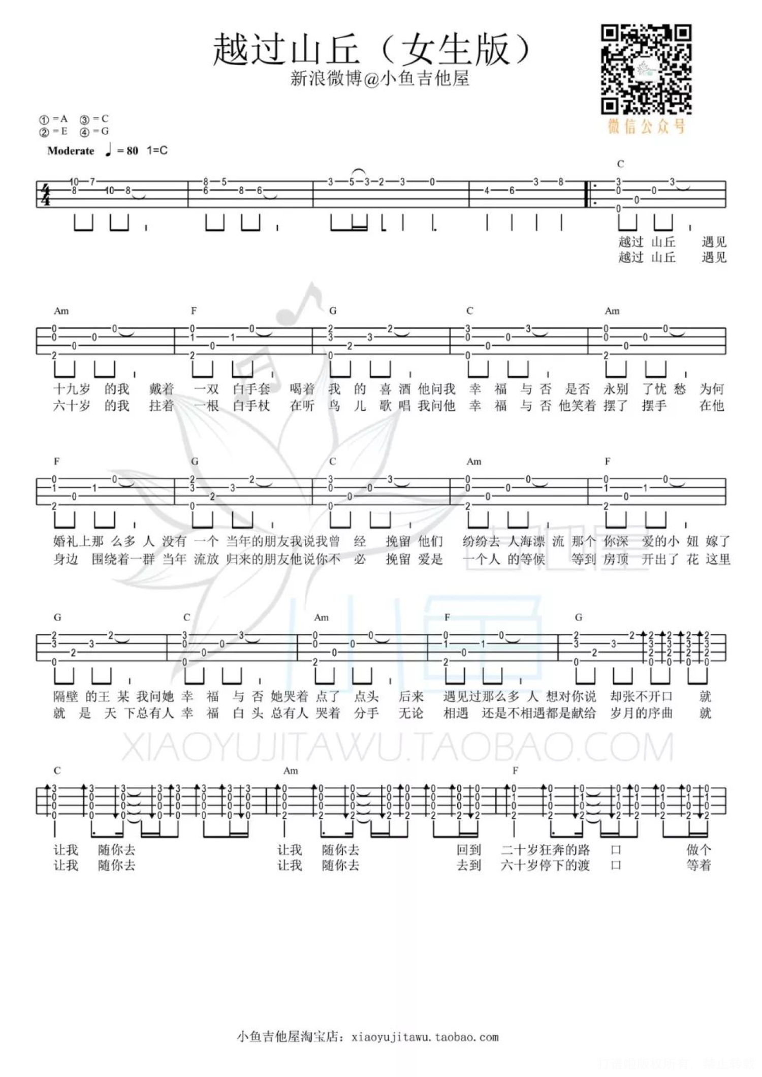 越过山丘尤克里里谱 - 杨宗伟