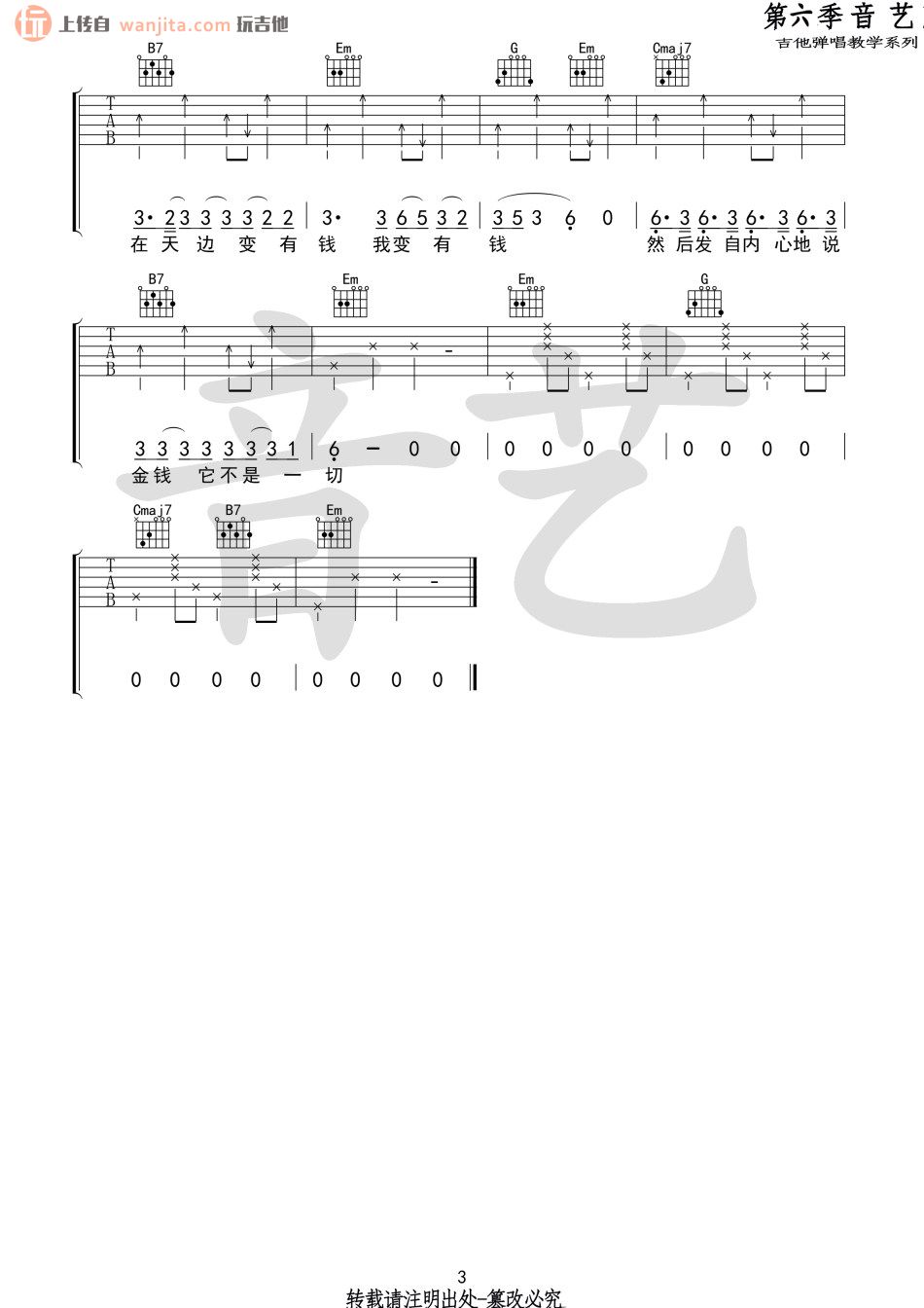 曲谱介绍: 如果有一天我变得很有钱吉他谱,总共3张高清图片谱,节拍4/4拍,原调是G调,不使用变调夹,弹唱难度初级。