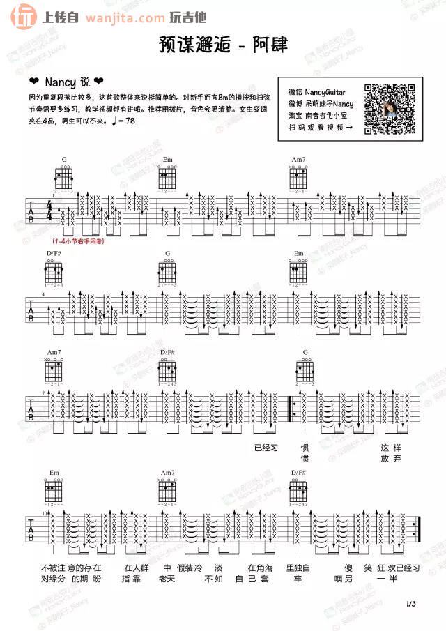 曲谱介绍: 《预谋邂逅》吉他弹唱演示视频