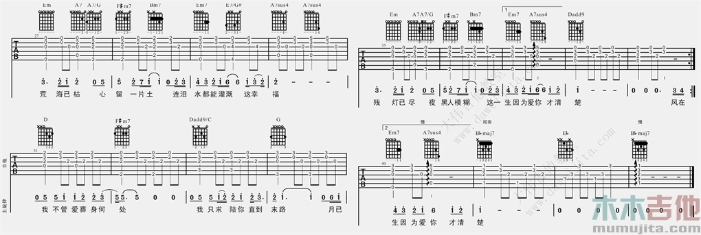 曲谱介绍: 齐秦《悬崖》吉他弹唱谱,采用D调指法编配,共有3张高清图谱。