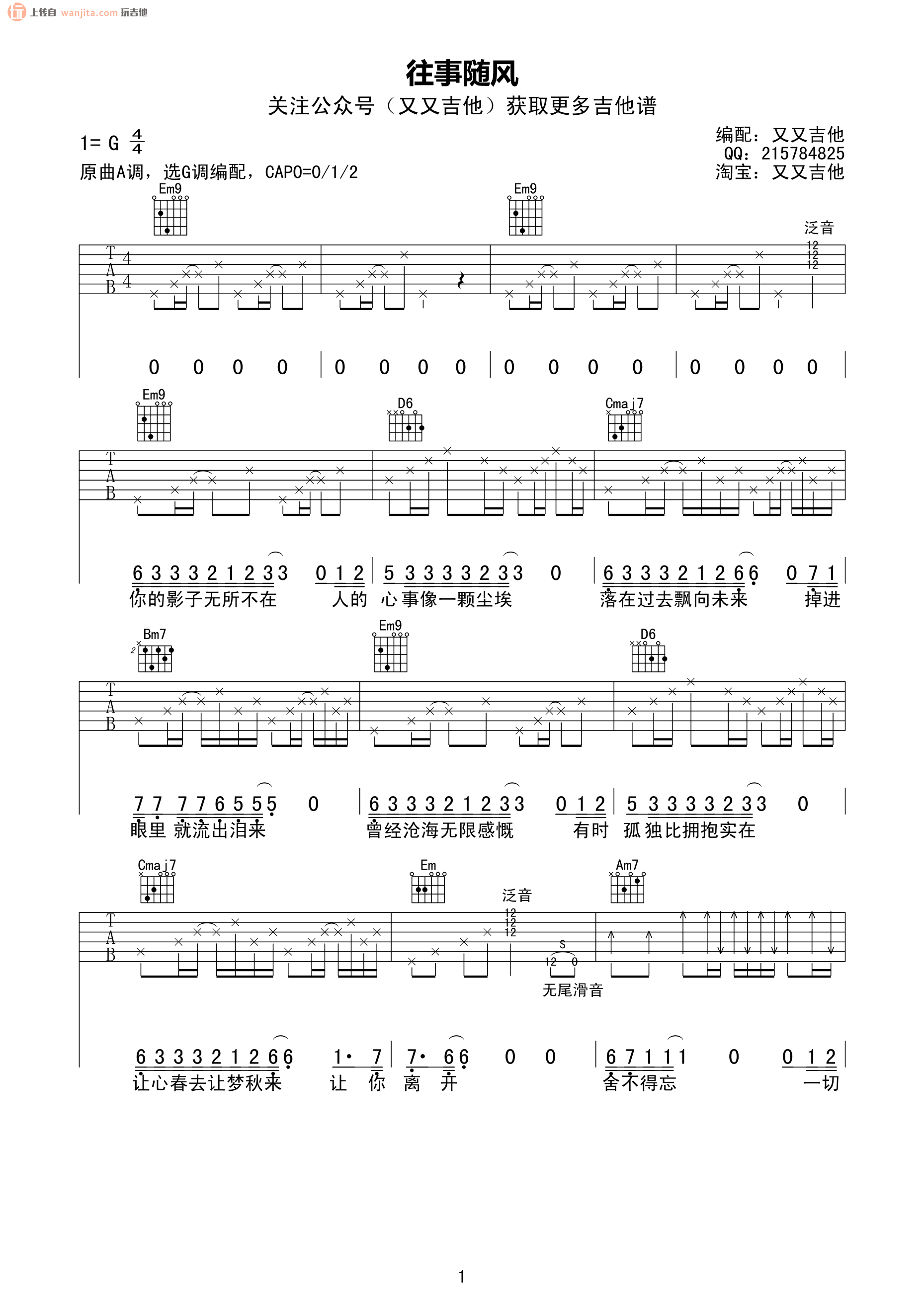 当前位置:琴谱网>吉他弹唱>往事随风