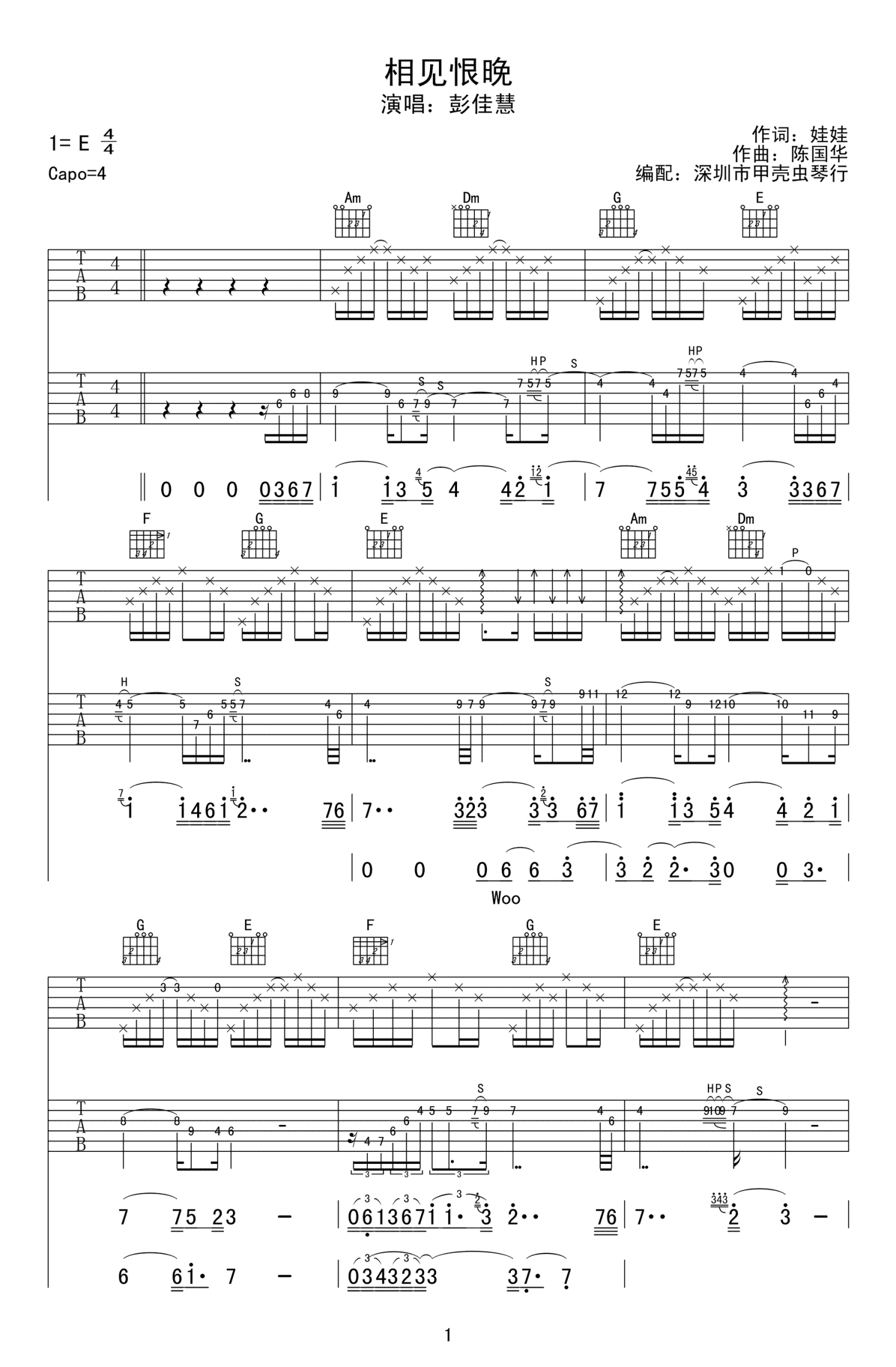 曲谱介绍: 彭佳慧《相见恨晚》吉他谱,C调高清弹唱谱,变调夹夹四品。这首歌曲是彭佳慧的经典代表作品,唱出那相见恨晚的遗憾与无奈,爱情里的迟疑和果决,还有痛彻心扉的残酷,是一首励志情感的伤感情歌。