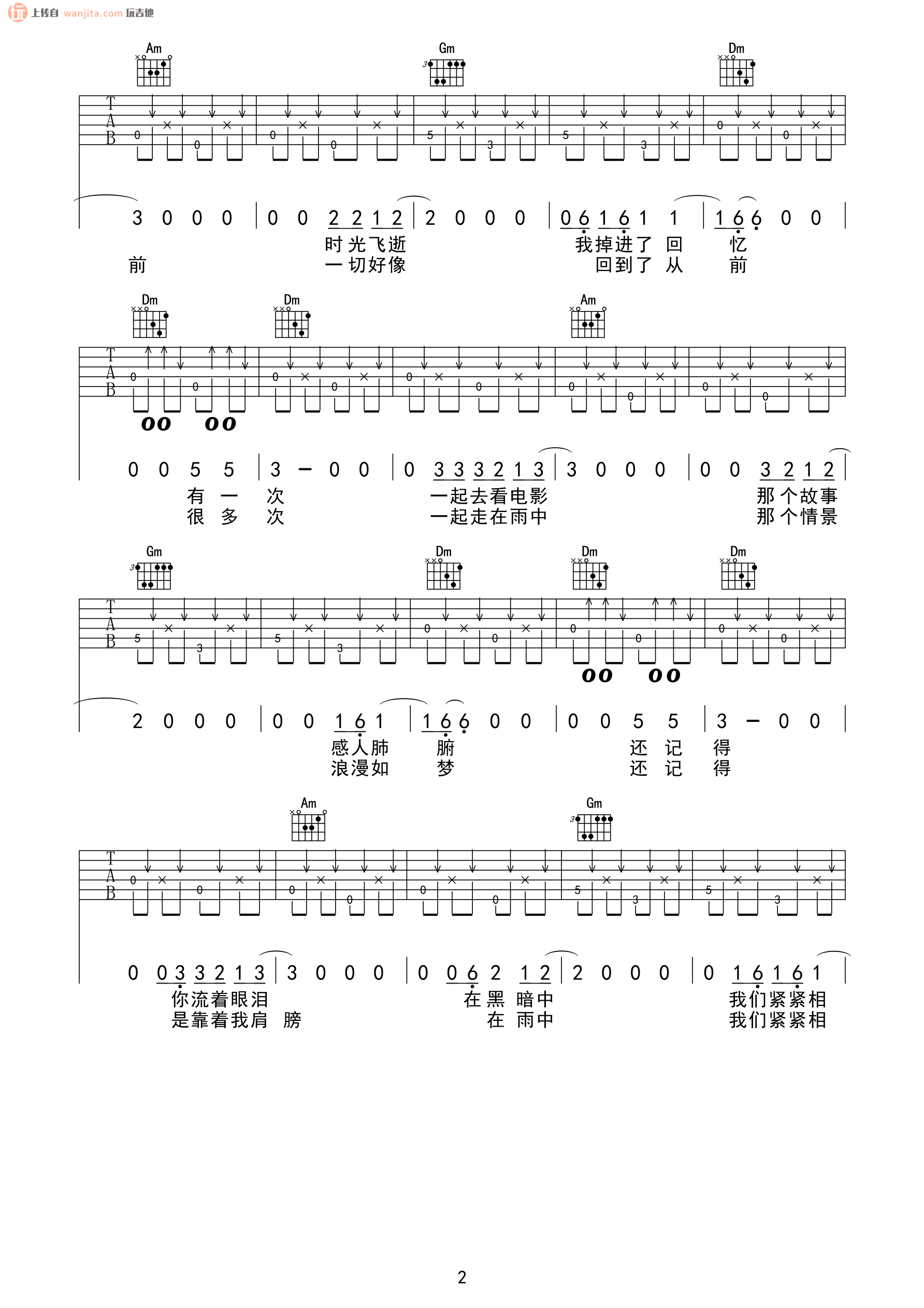曲谱介绍: 汪峰《在雨中》吉他谱,总共4张高清图片谱,原调为F调,节拍4/4拍,不使用变调夹,弹唱难度初级。