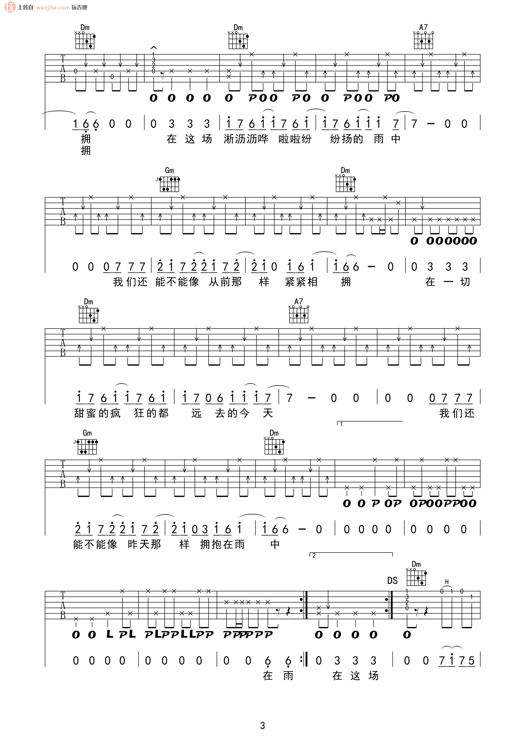 当前位置:琴谱网>吉他弹唱>在雨中
