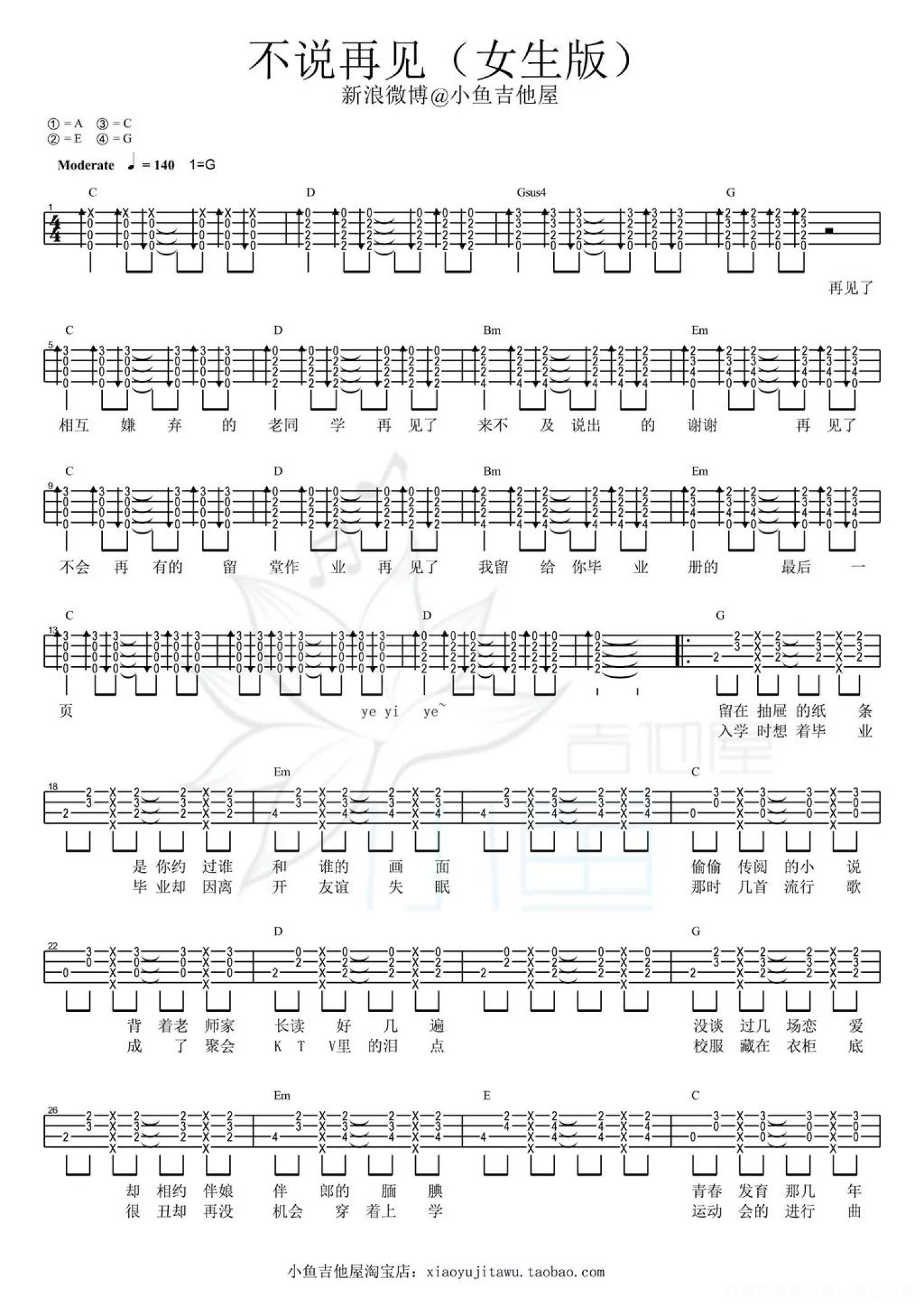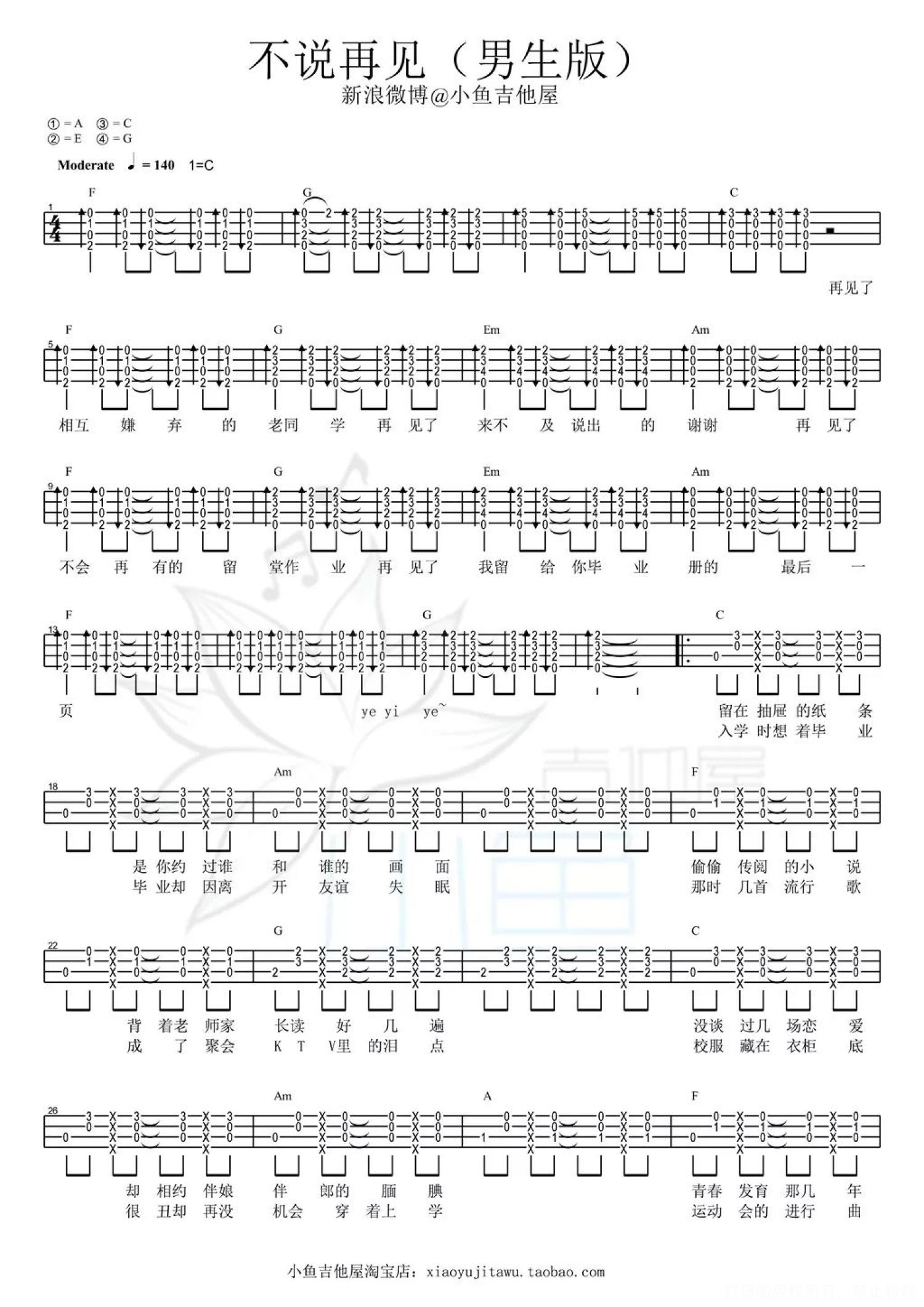 曲谱介绍: 视频教学   不说再见 尤克里里谱