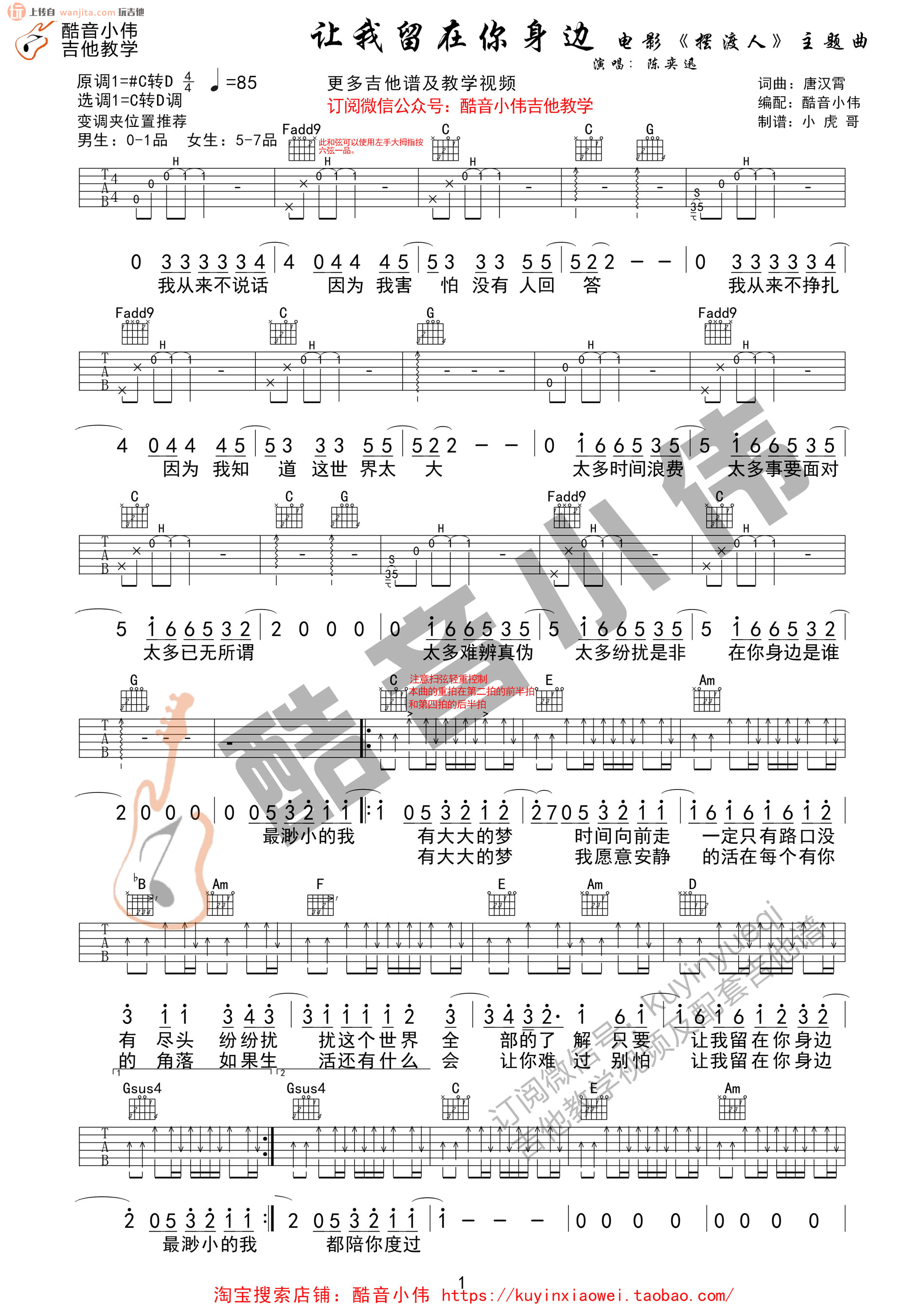 琴谱网为您精心推荐 让我留在你身边 高清图谱
