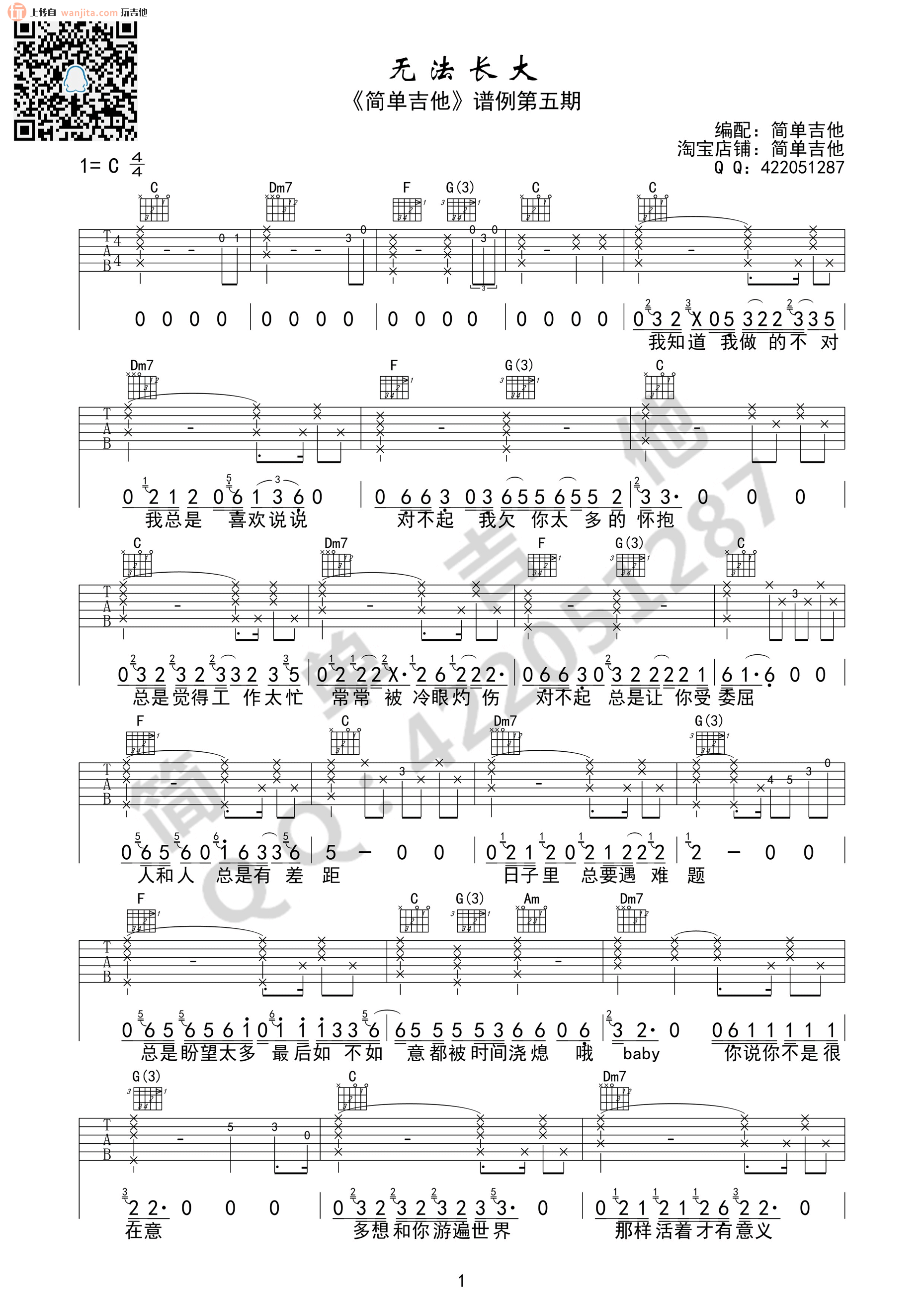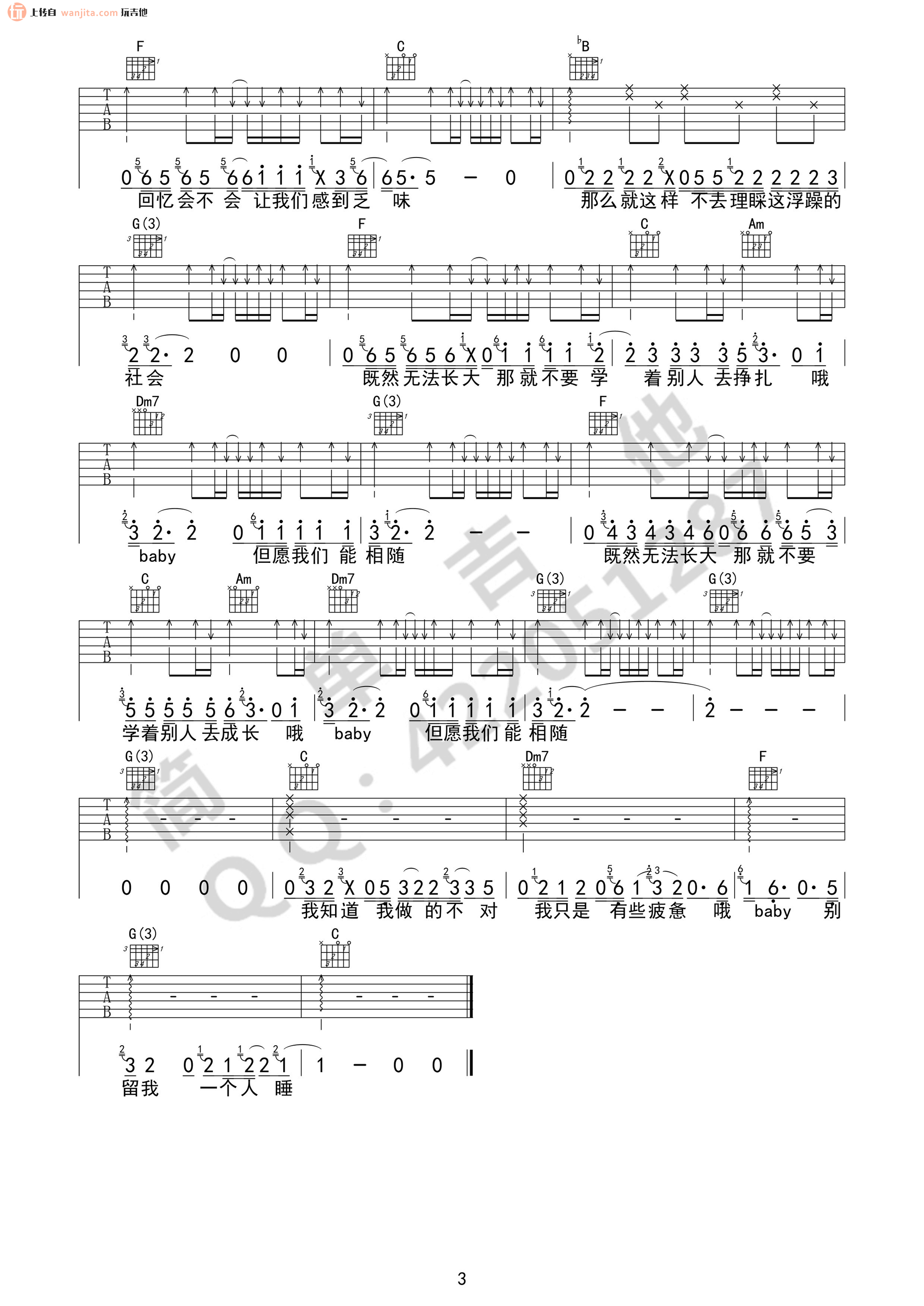 当前位置:琴谱网>吉他弹唱>无法长大