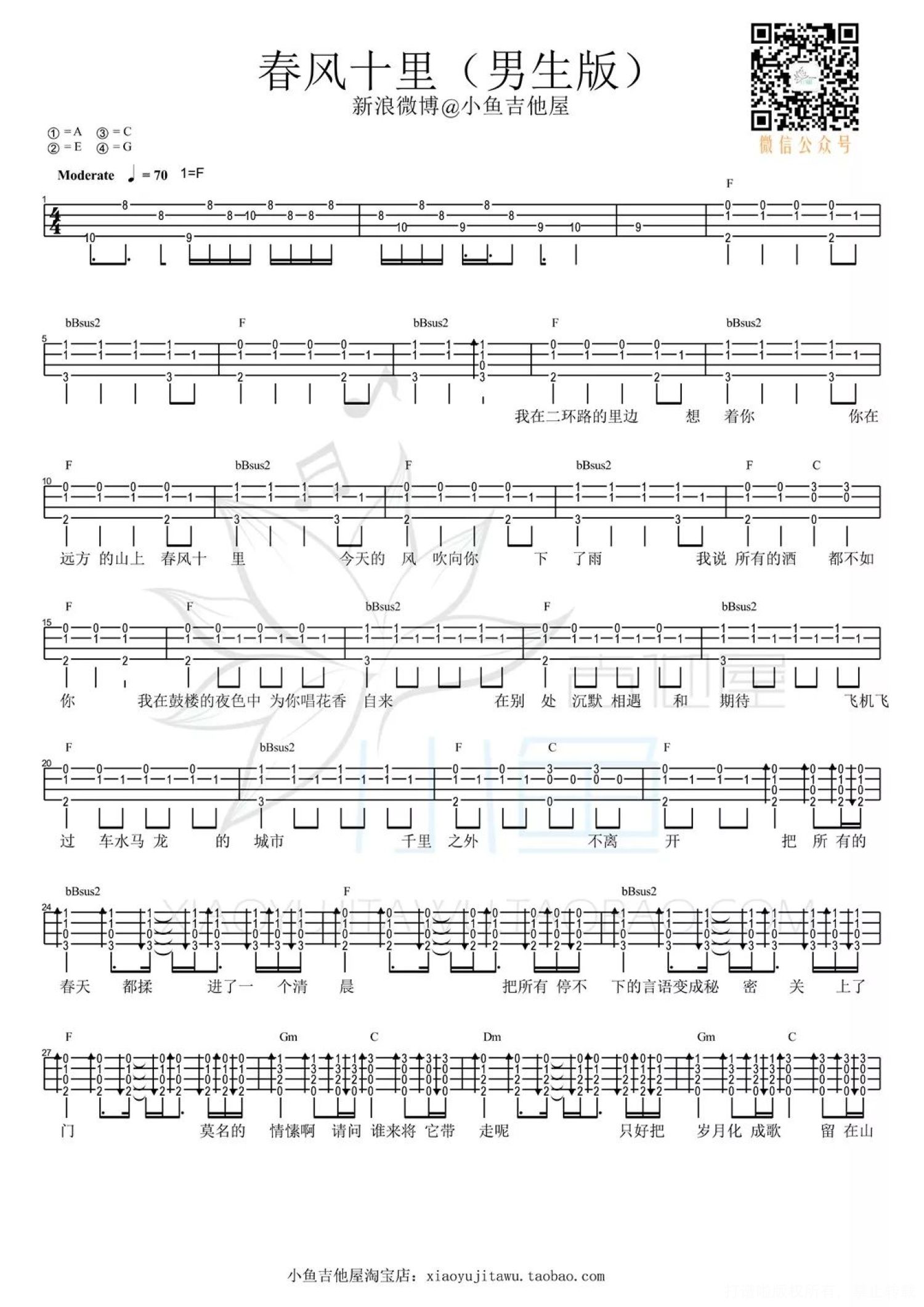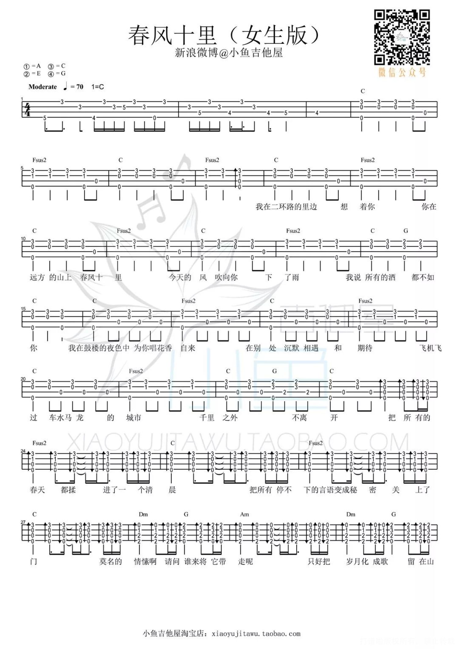 曲谱介绍: / 教学视频 /   春风十里 尤克里里谱 男生版   女声版