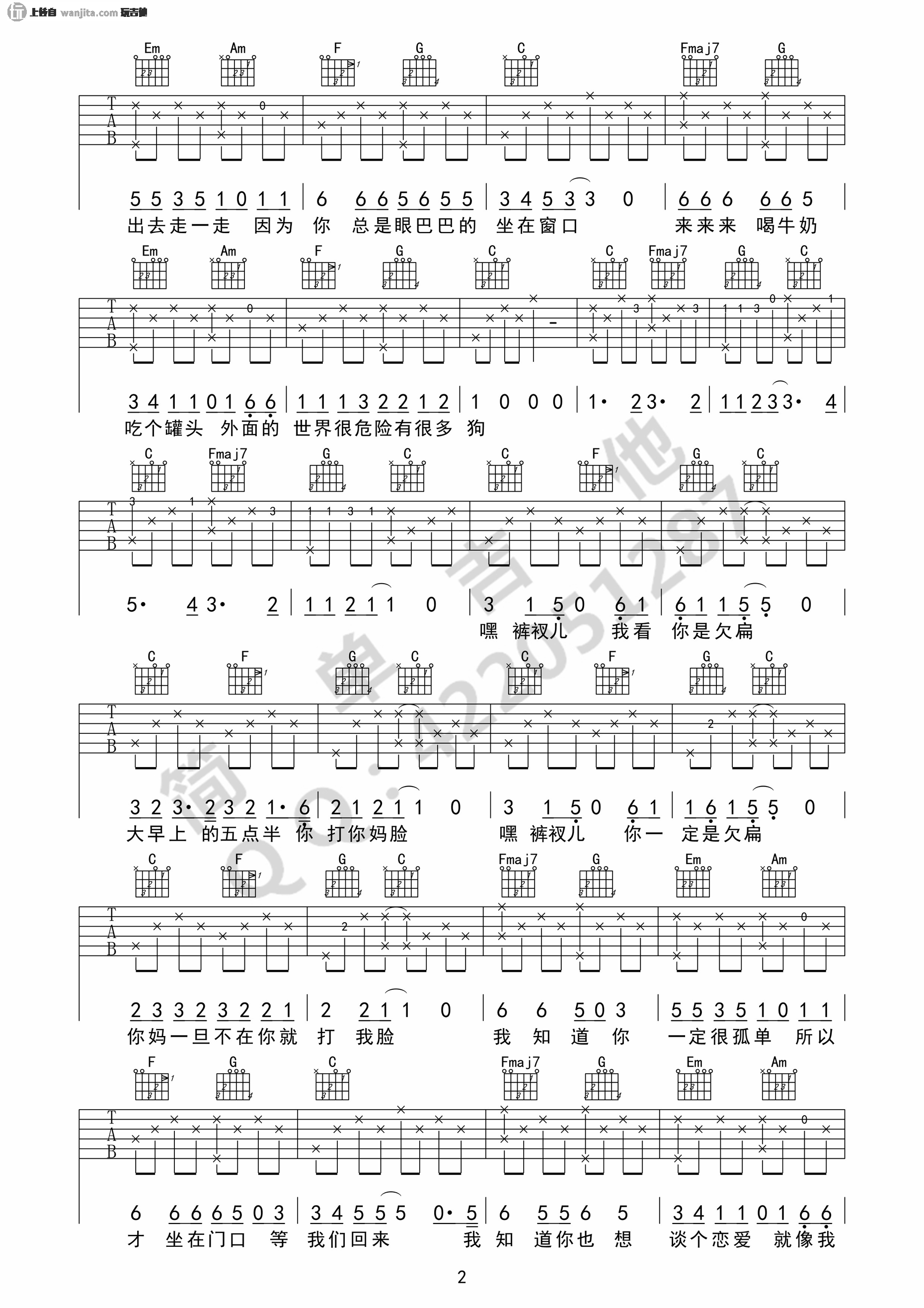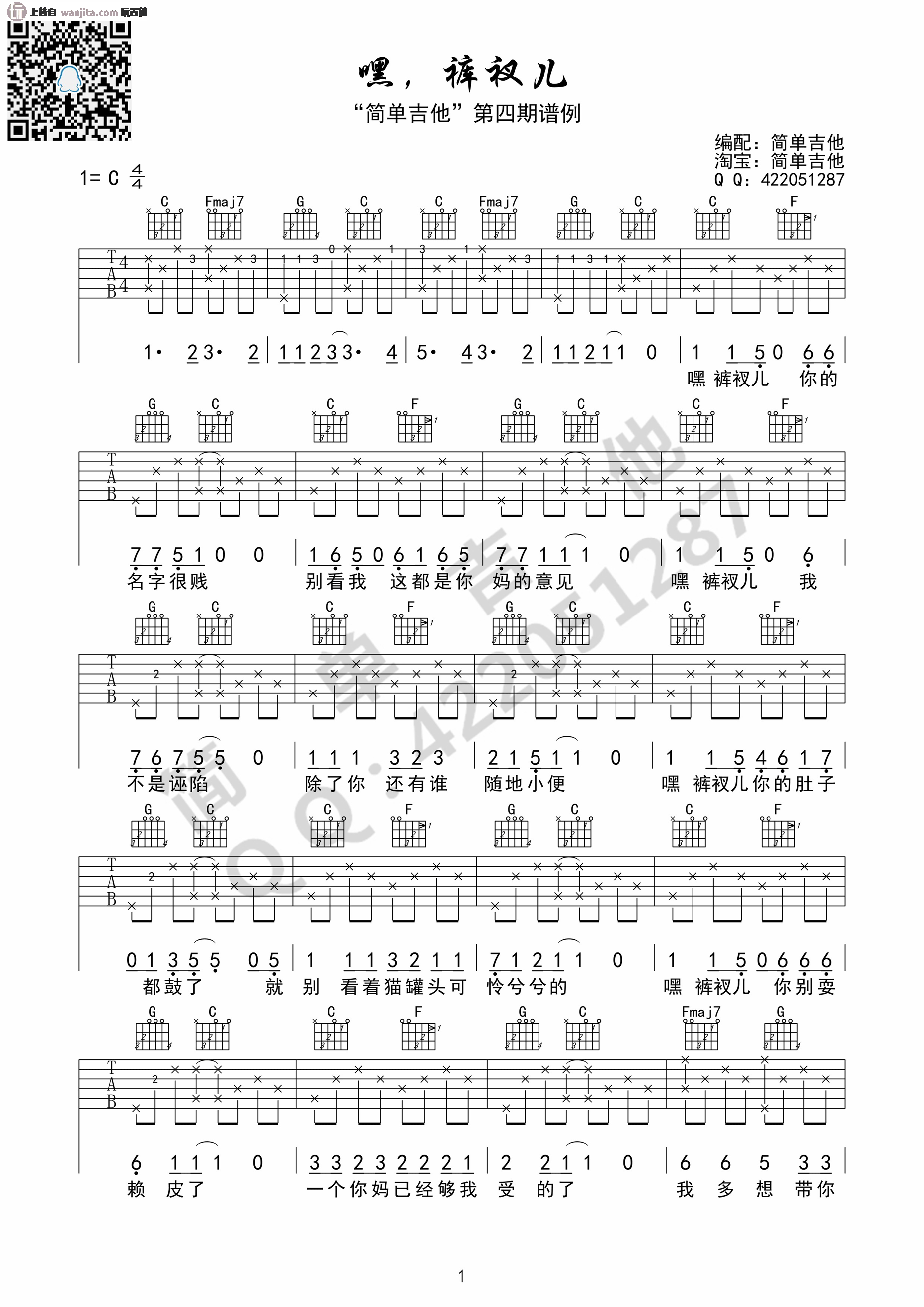 曲谱介绍: 《嘿,裤衩儿》吉他谱,总共3张高清图片谱,原调为C调,节拍4/4拍,不使用变调夹,弹唱难度初级。
