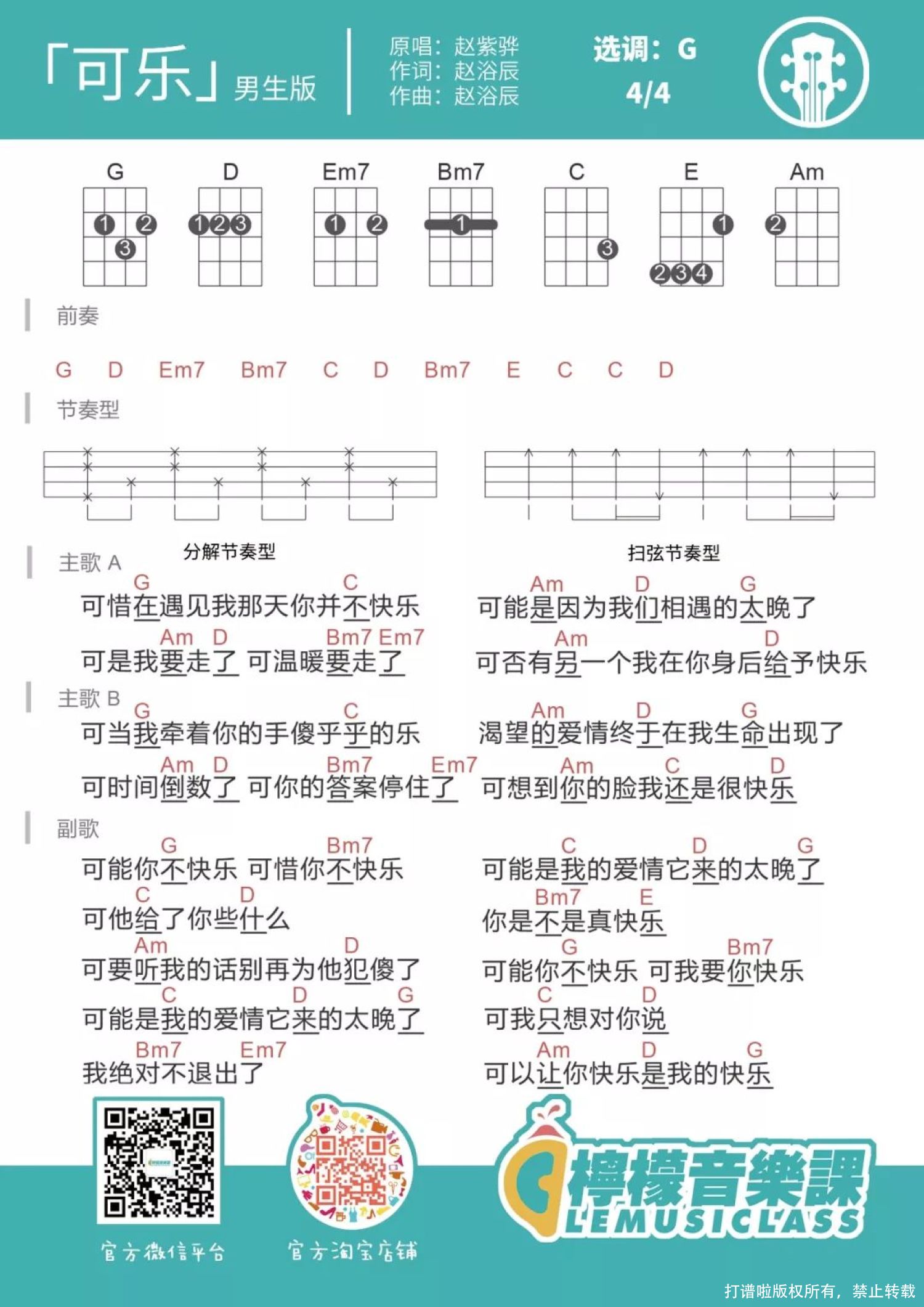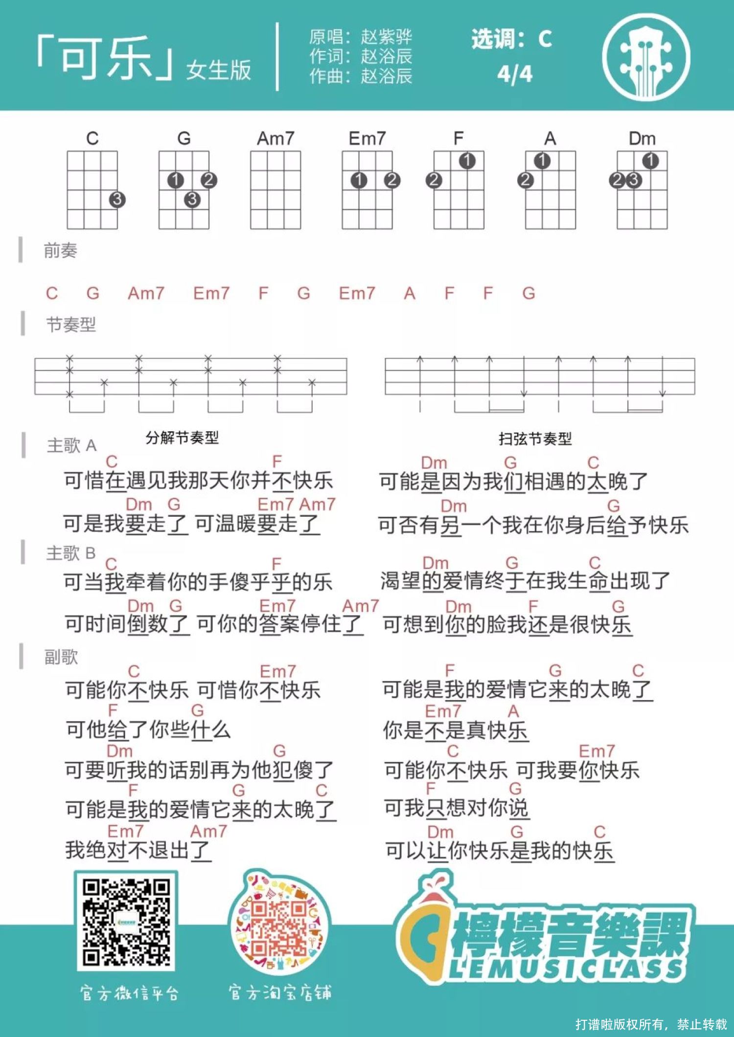 可乐尤克里里谱 - 赵浴辰