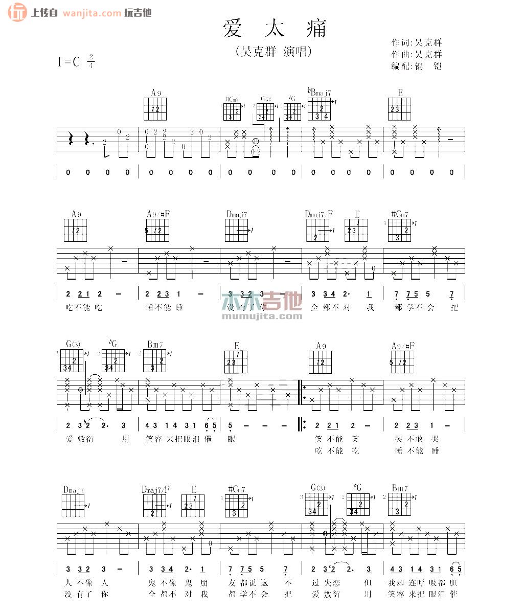 爱太痛吉他谱 - 吴克群 - C调吉他弹唱谱