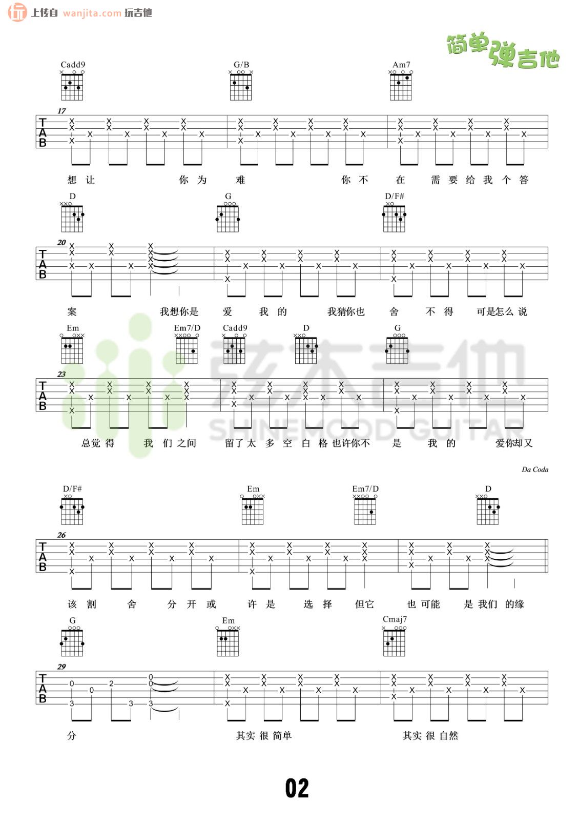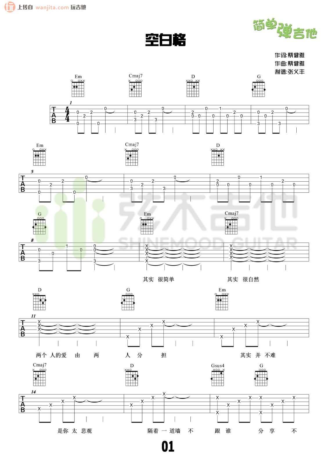 空白格吉他谱 - 蔡健雅 - 吉他弹唱谱
