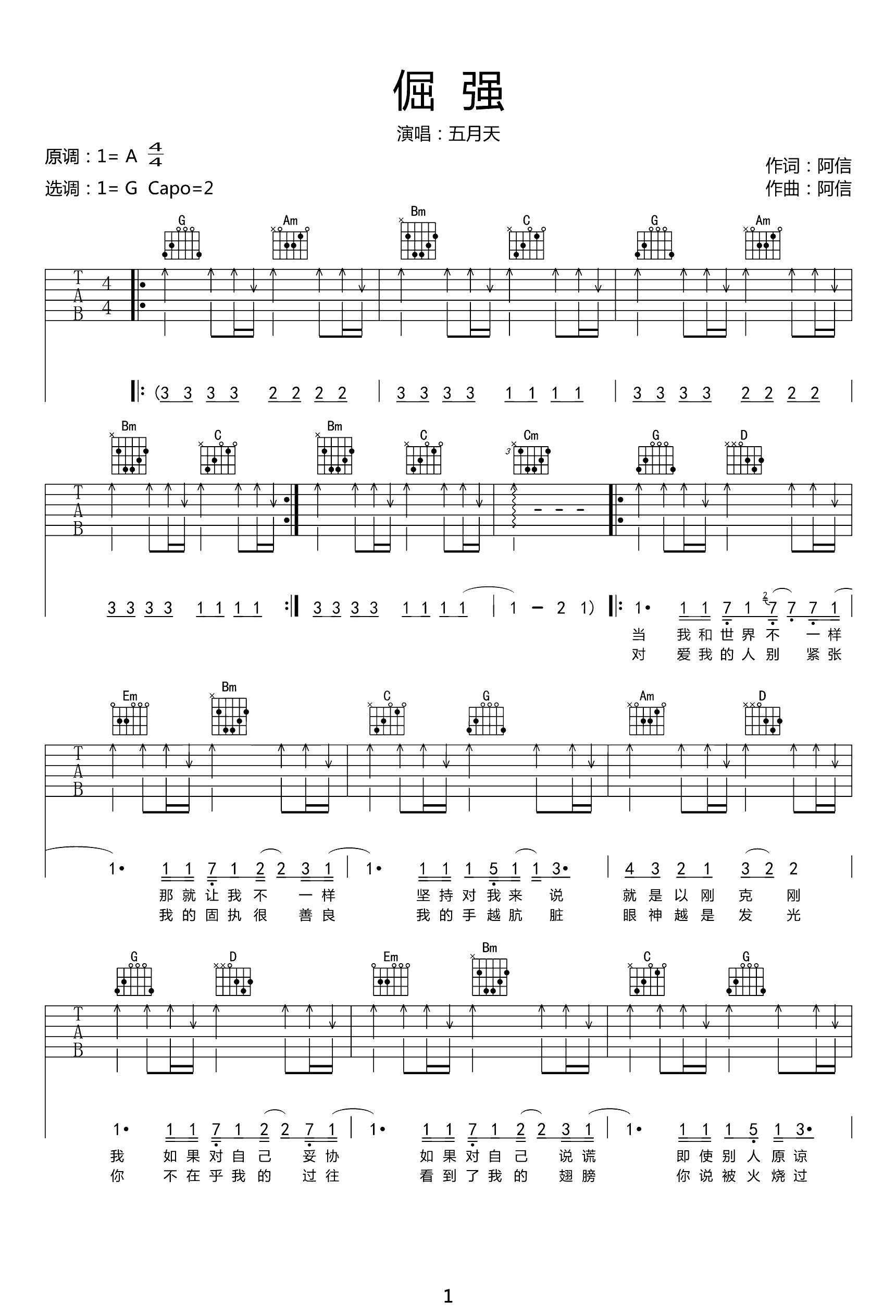 倔强吉他谱 - 五月天 - G调吉他弹唱谱 - 原版