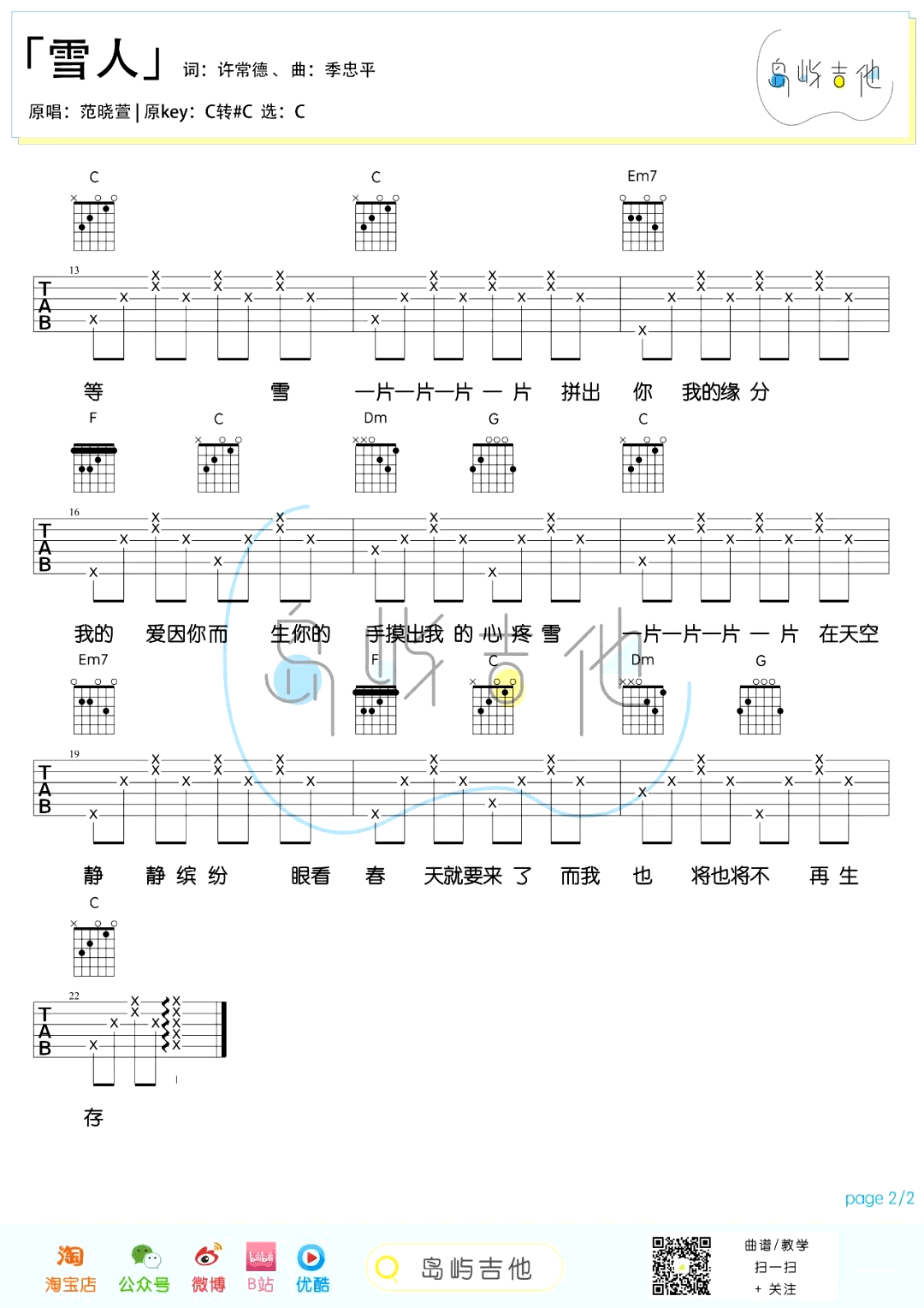 当前位置:琴谱网>吉他弹唱>雪人