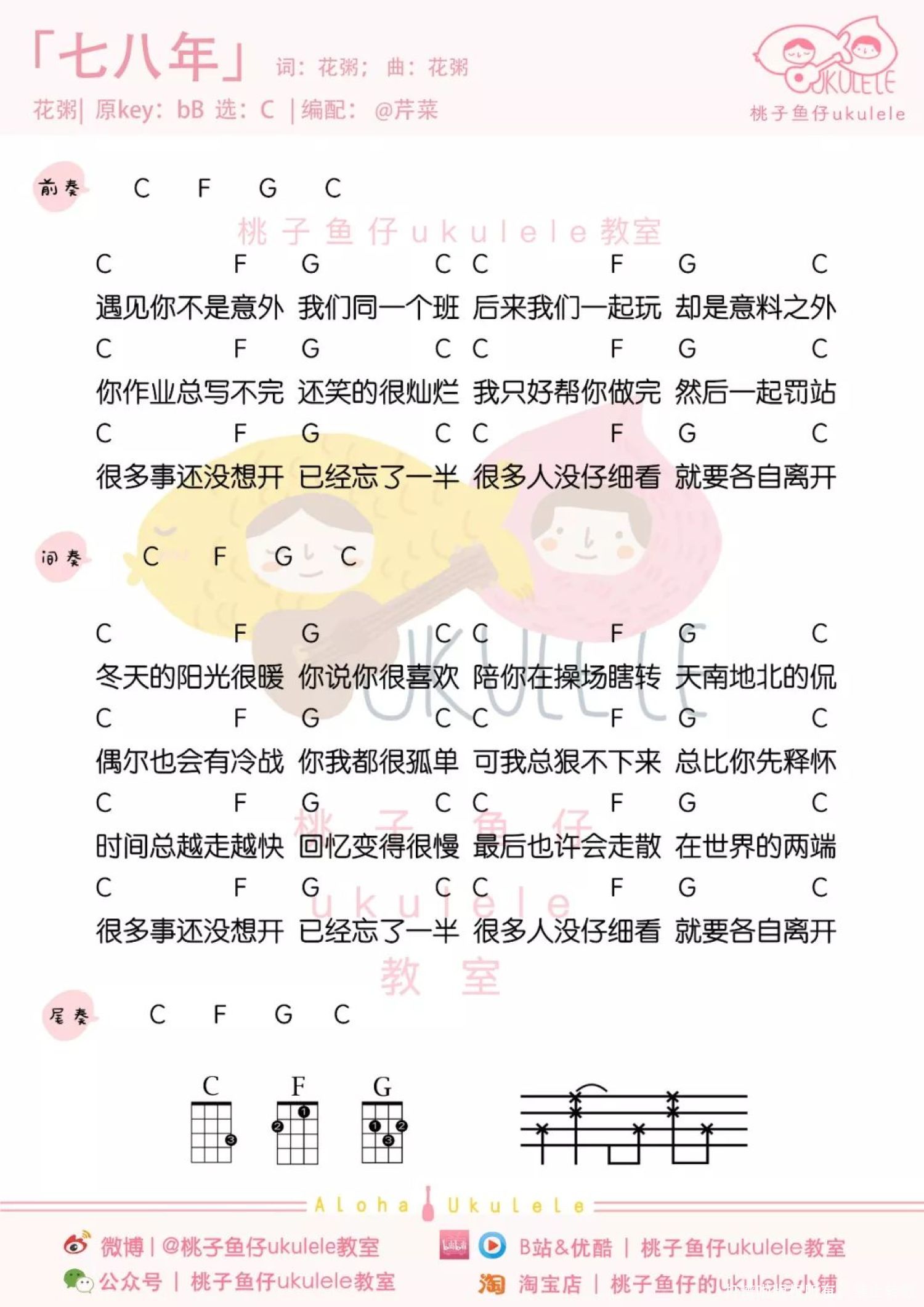 曲谱介绍: 《七八年》尤克里里弹唱谱