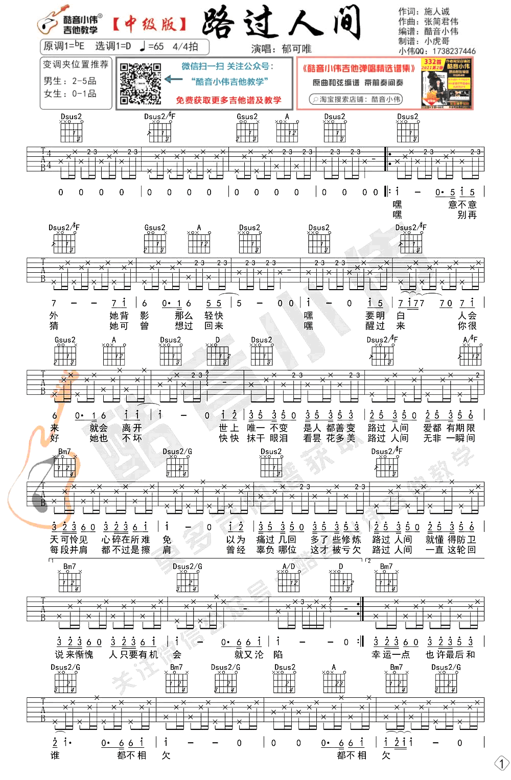 路过人间吉他谱 - 郁可唯 - D调吉他弹唱谱