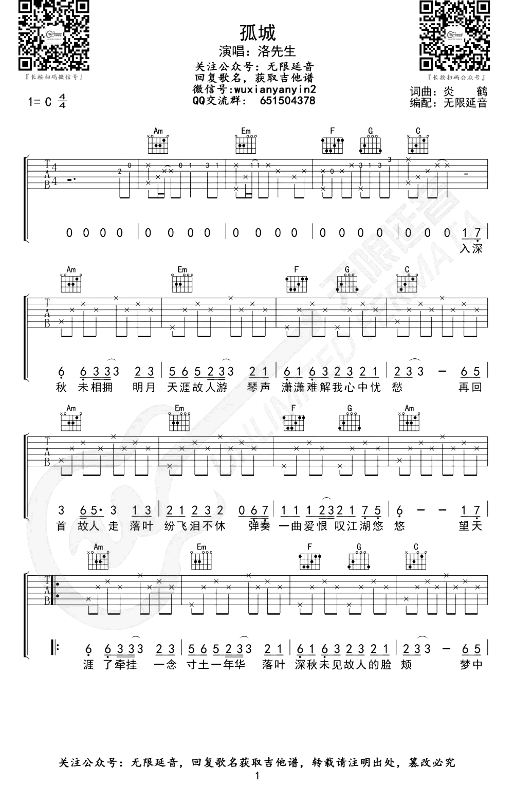 孤城吉他谱 - 洛先生 - C调吉他弹唱谱