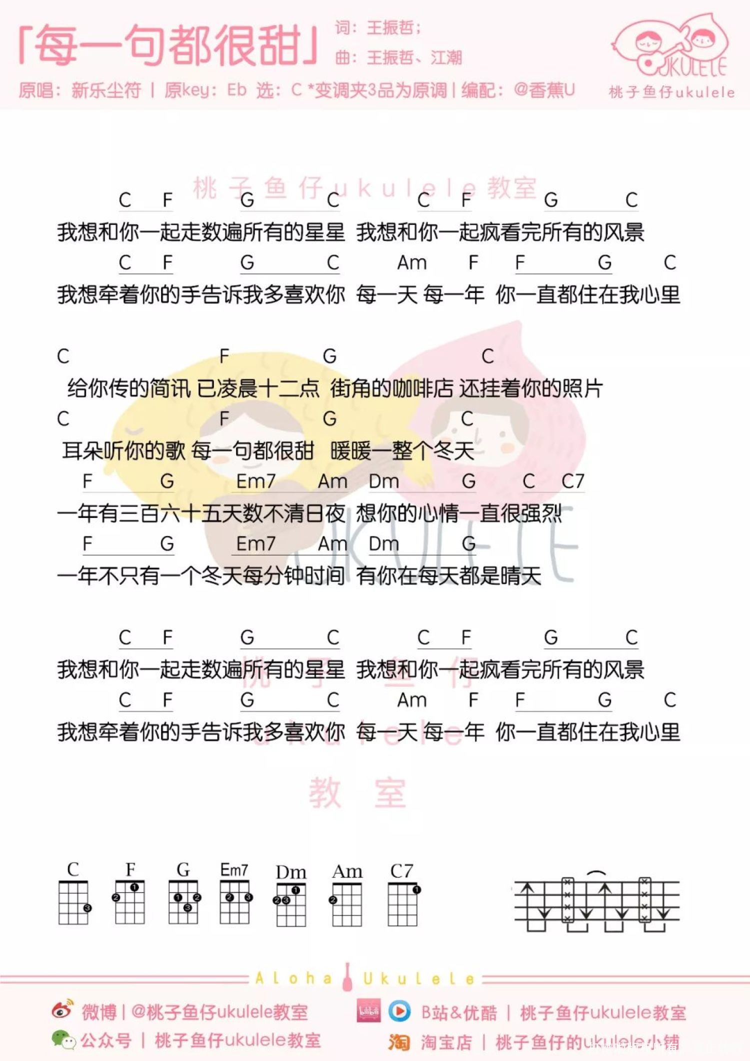 曲谱介绍: 《每一句都很甜》尤克里里弹唱谱
