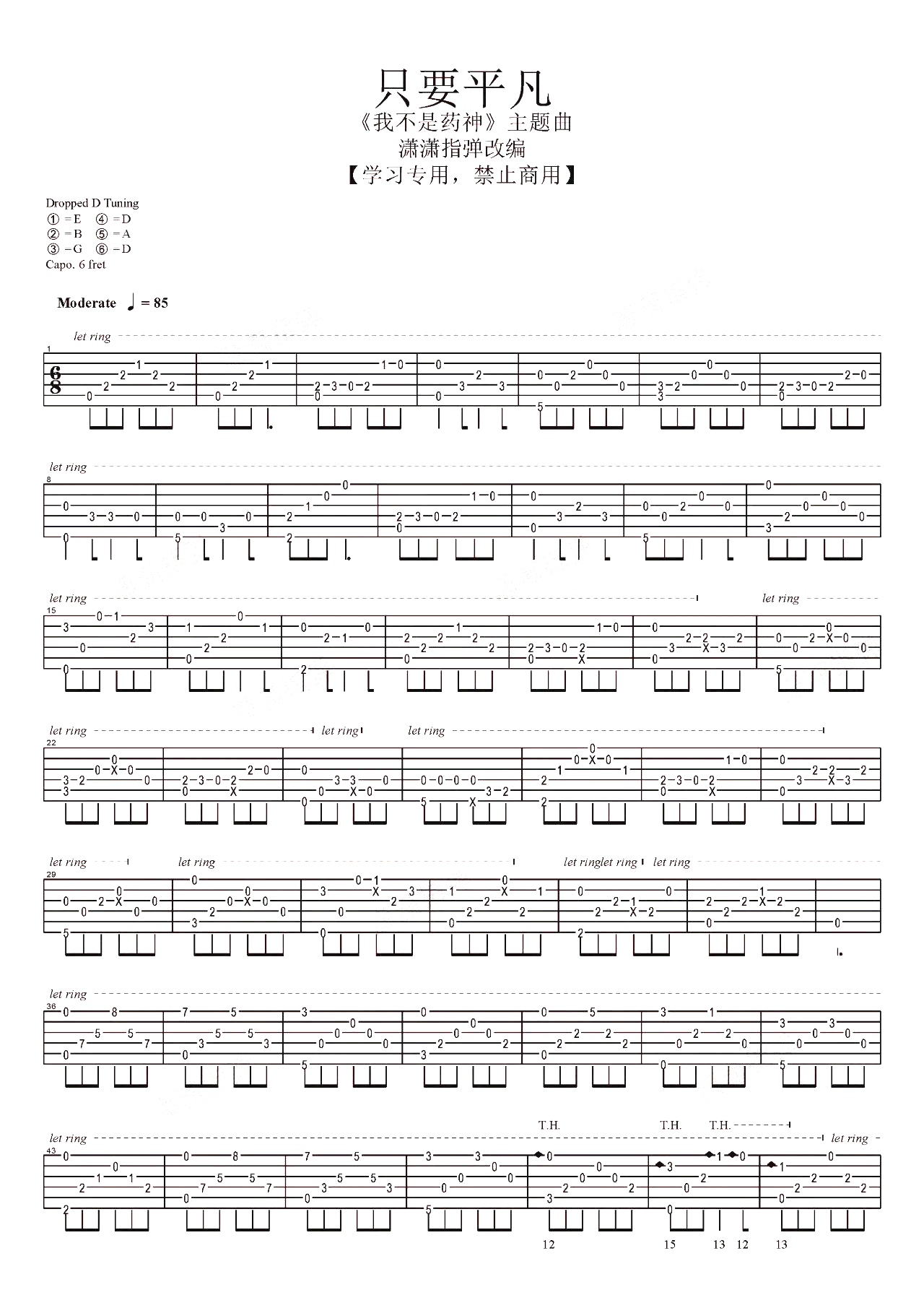 曲谱介绍: 主题曲《我不是药神》吉他独奏谱,共有2张高清图谱,免翻页排版设计。