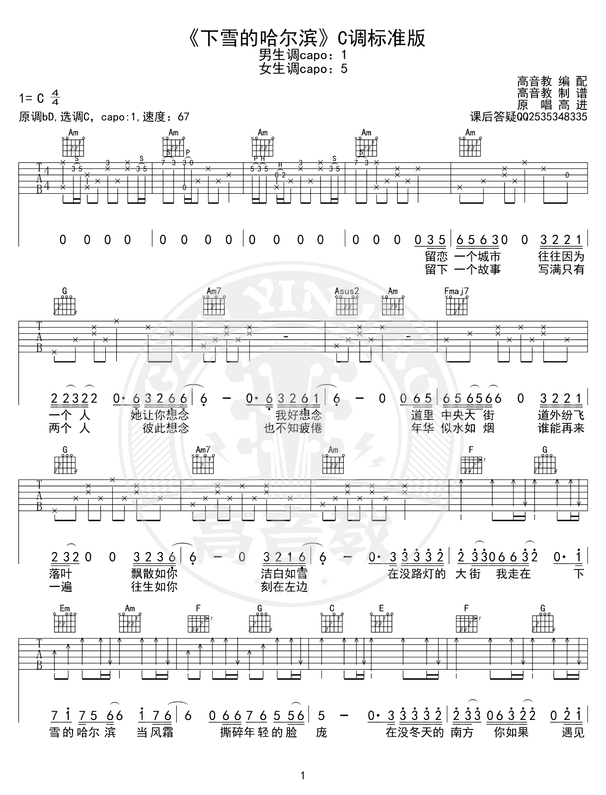 下雪的哈尔滨吉他谱 - 高进 - C调吉他弹唱谱