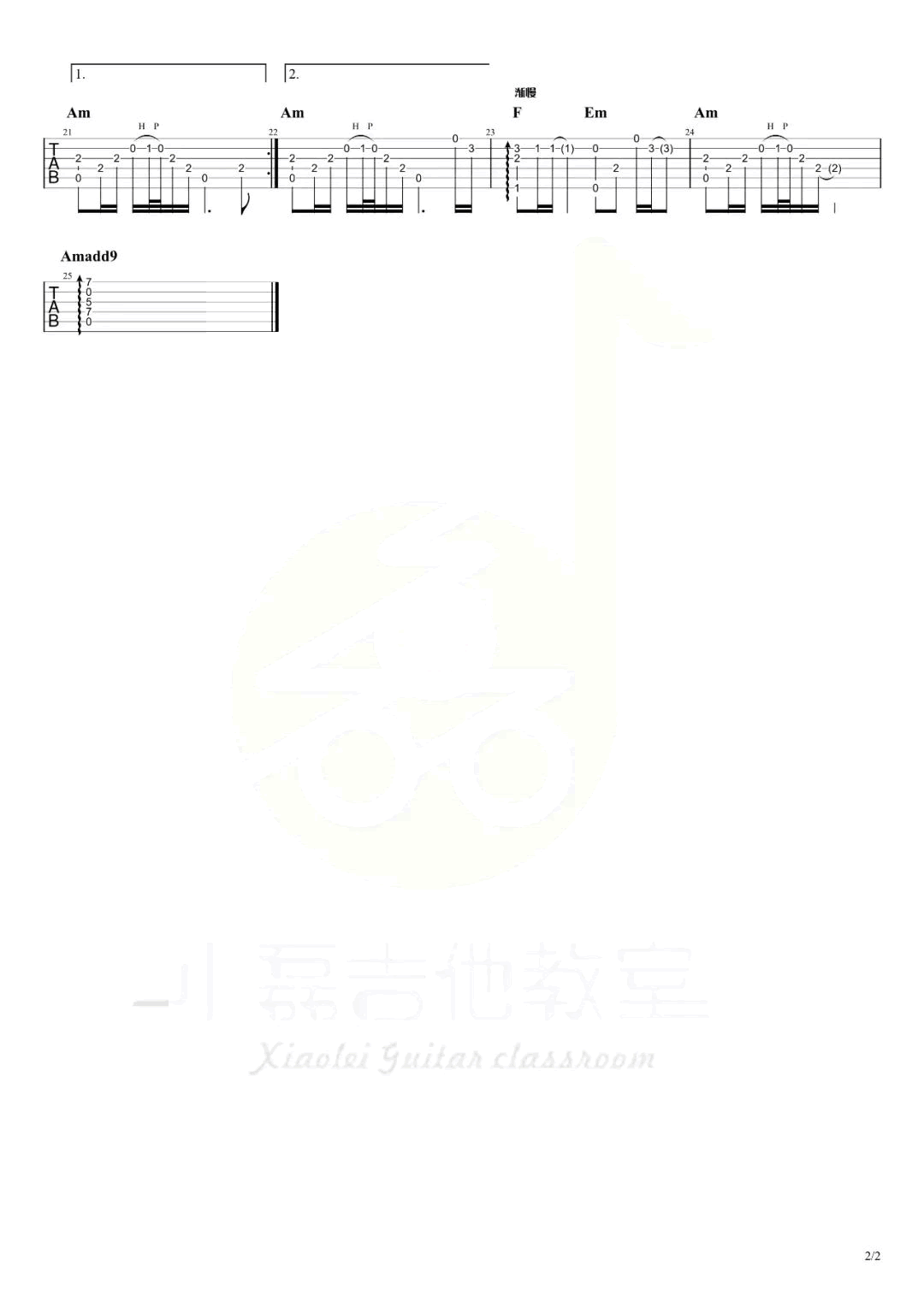 曲谱介绍: 莫叫姐姐《不该用情》吉他独奏谱,共有2张高清图谱,免翻页排版设计。