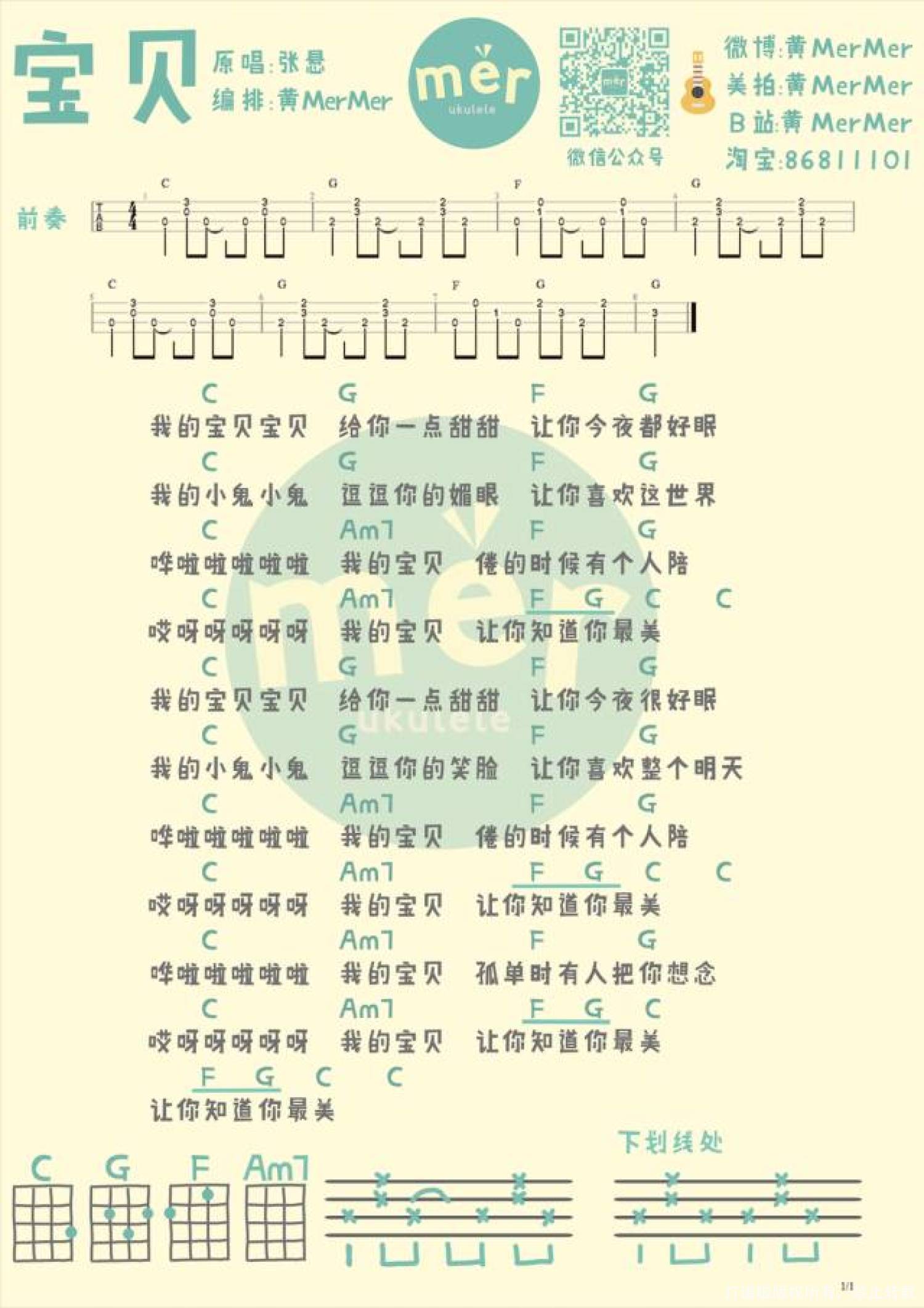 宝贝尤克里里谱 - 张悬