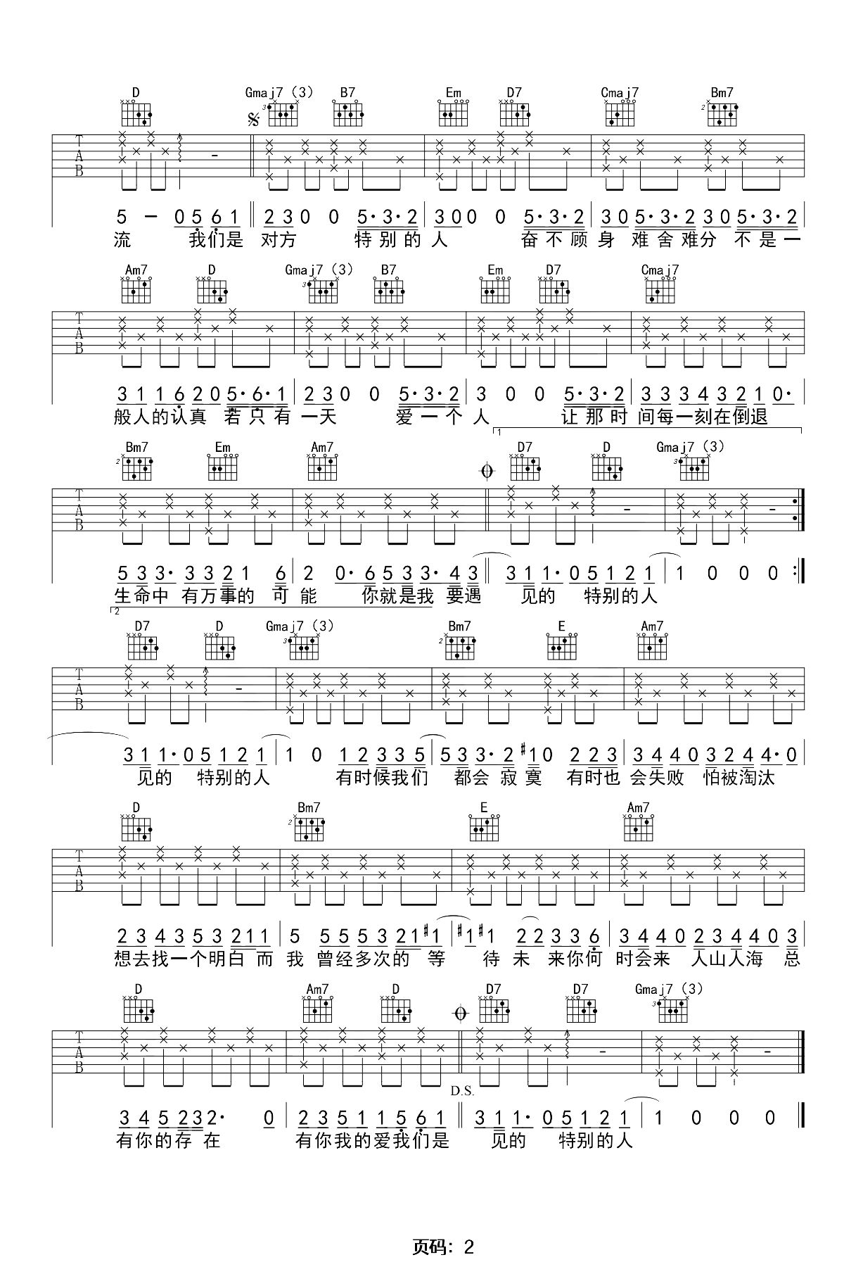 当前位置:琴谱网>吉他弹唱>特别的人