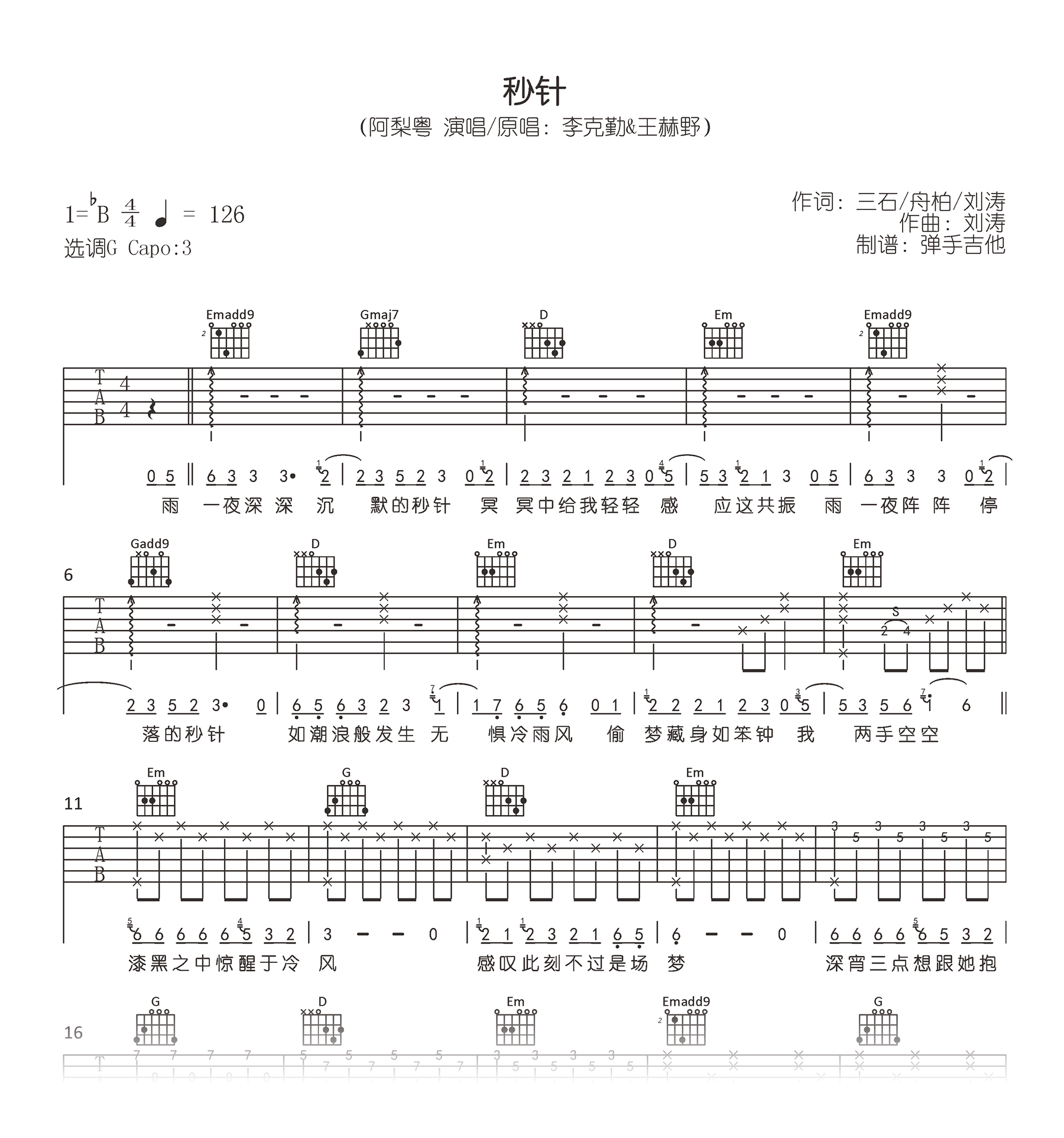 秒针吉他谱 - 阿梨粤 - 吉他弹唱谱